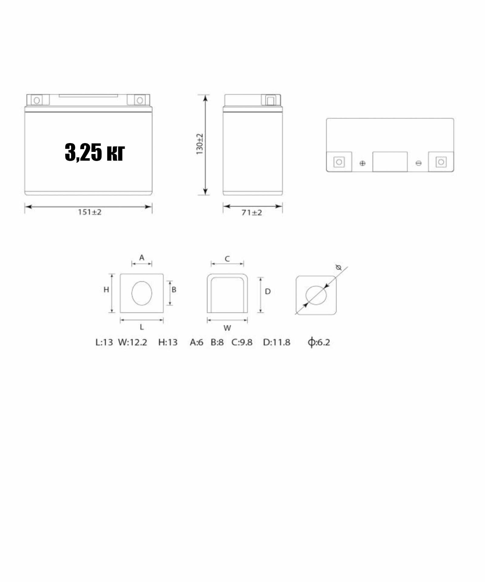 | Маркировка мотоаккумулятора | YT12B-BS |