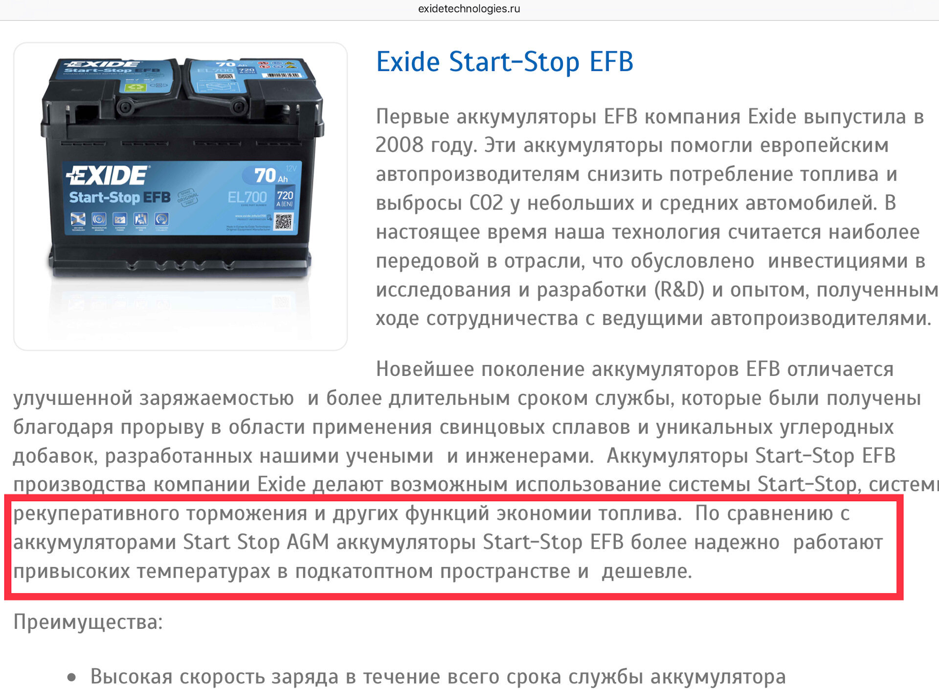 | Технология аккумулятора | EFB |