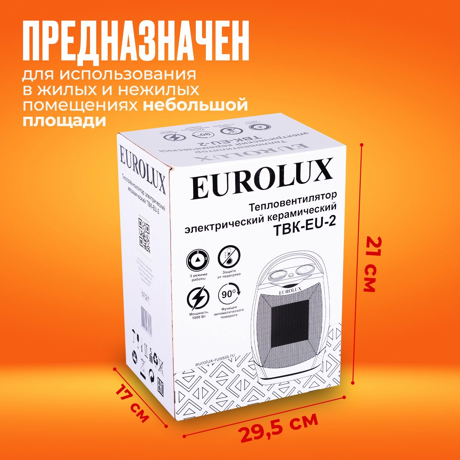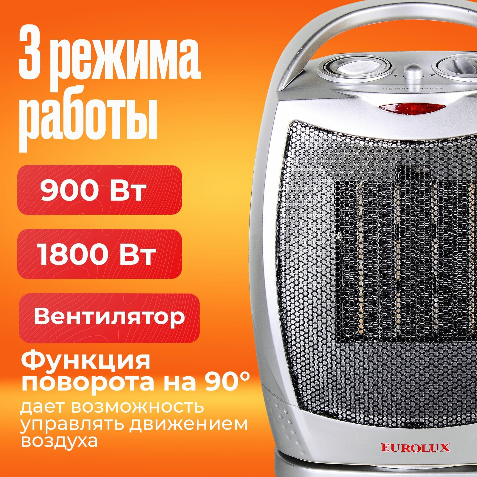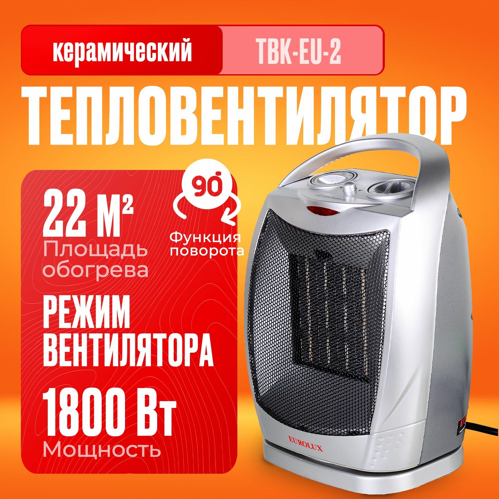Купить Тепловентилятор, обогреватель электрический с вентилятором Eurolux ТВК-EU-2 (1800 Вт, 22м2 3 режима, термостат, функция поворота)