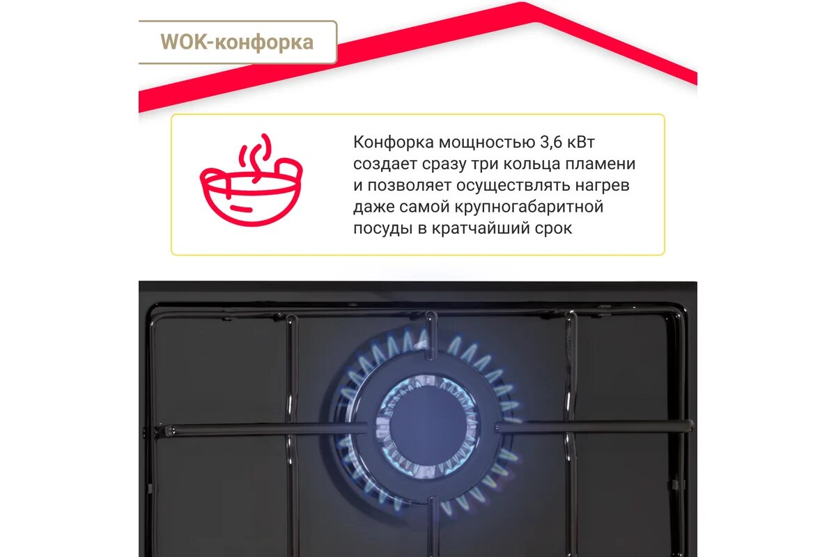 Газовая варочная поверхность Simfer H60Q35B022 (WOK конфорка)