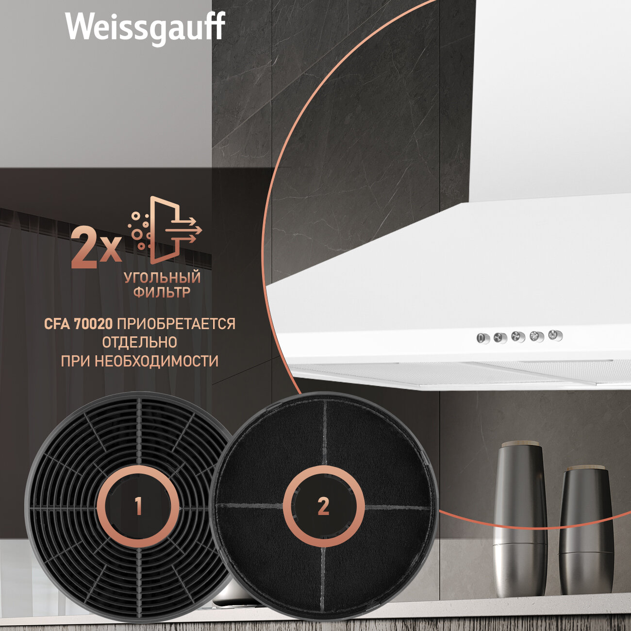 Купить Купольная вытяжка Weissgauff Zosma 50 PB WH, Алюминиевый жировой фильтр особой трёхслойной конструкции