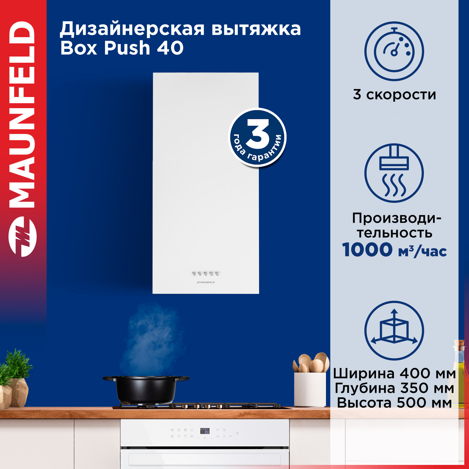 Купить Кухонная вытяжка MAUNFELD Box Push 40 белый, до 40 м2, 181 Вт, 60 дБ, 3 скорости, пристенная