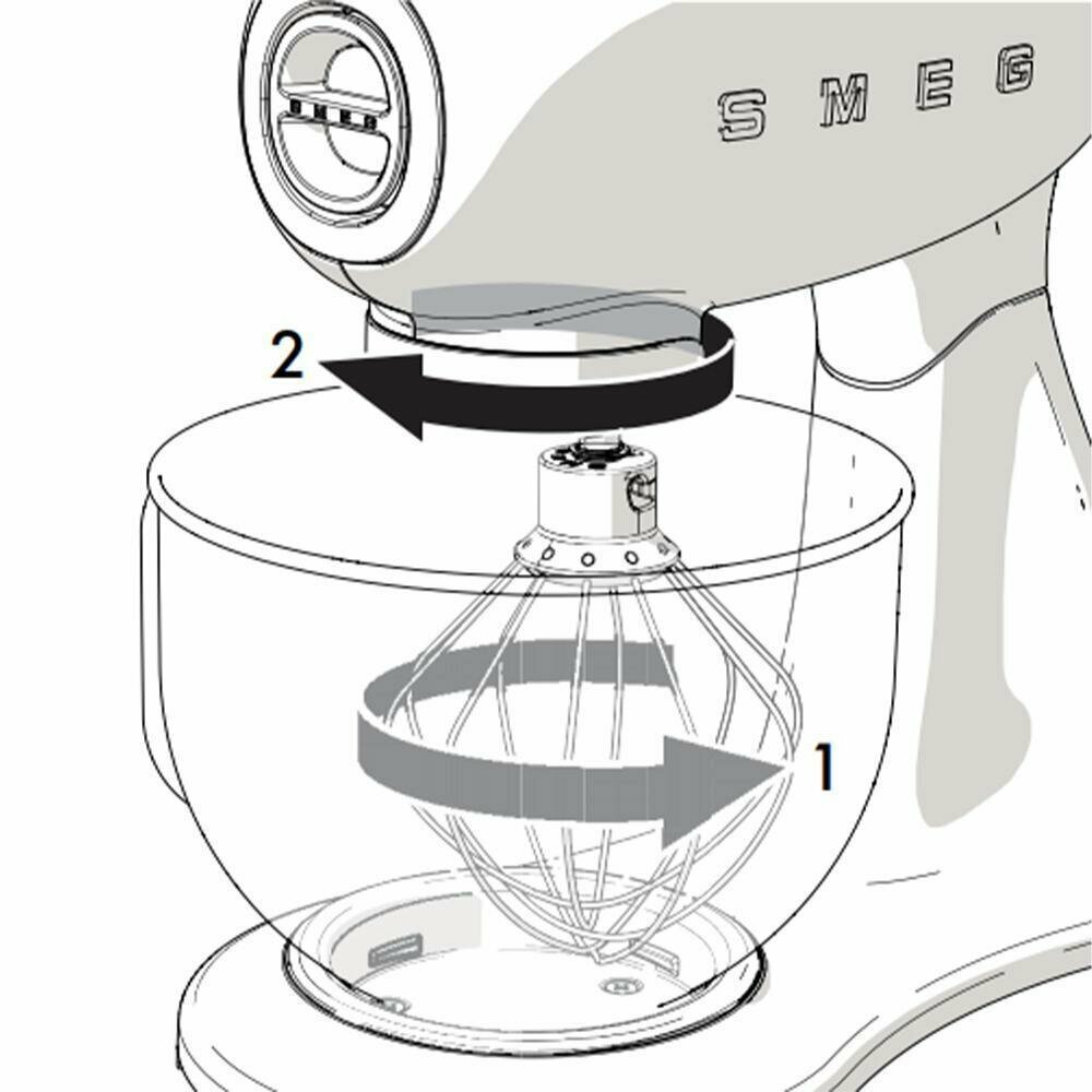 Миксер Smeg Планетарный Мощность 0,8 кВт; Объем чаши 4,8л; Регулировка скорости, 2 насадки для взбивания, 1 насадка для теста, крышка для чаши,