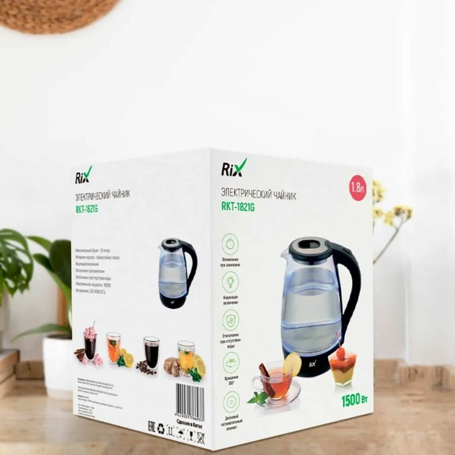Чайник электрический RIX 1,8л стеклянный корпус RKT-1821G