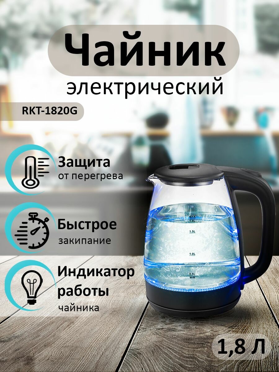 Чайник электрический RIX 1,8л стеклянный корпус RKT-1820G