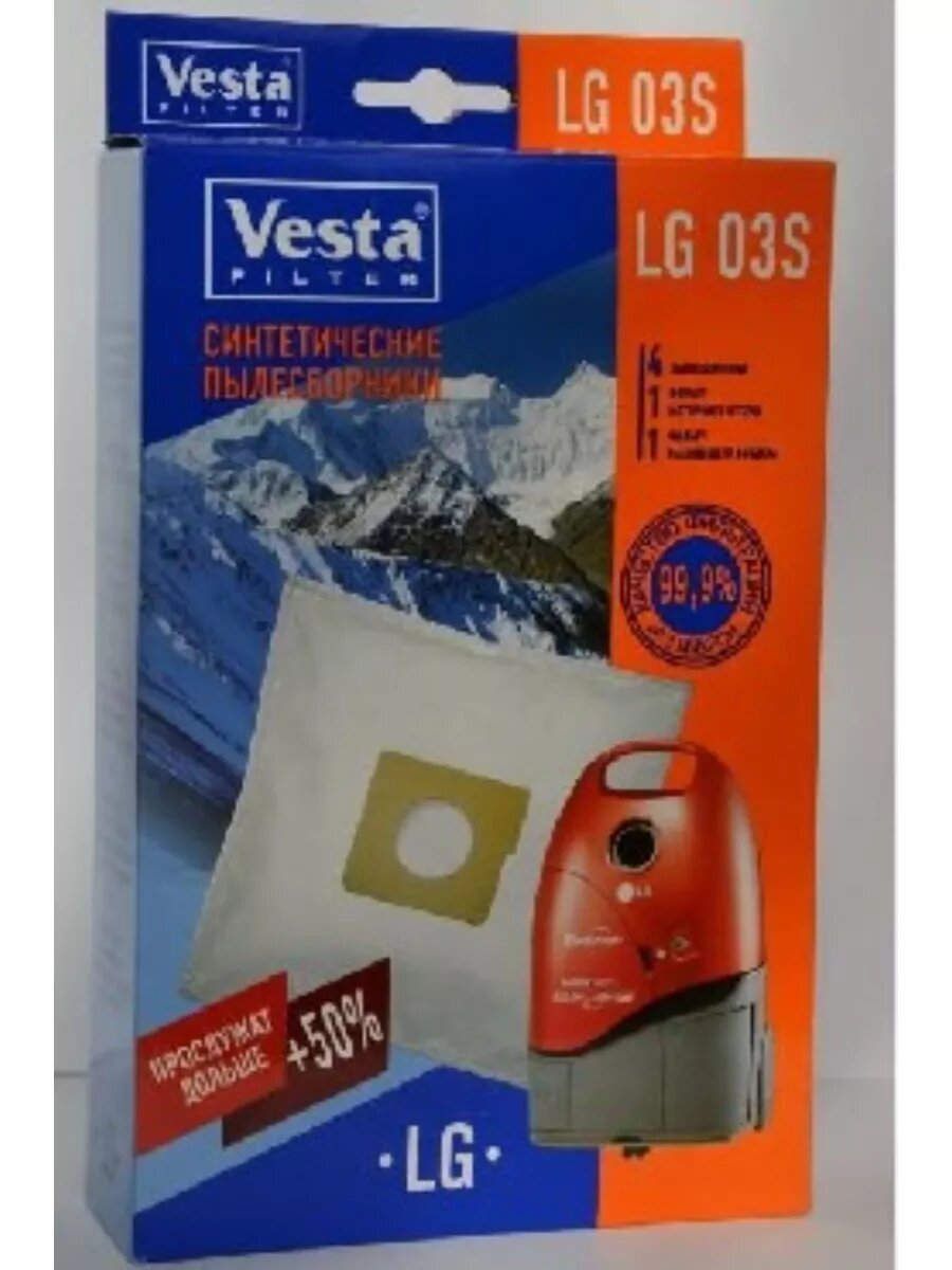 Купить Мешок для пылесоса Vesta filter, LG 03 S, синтетический, 4 шт, + 2 фильтра