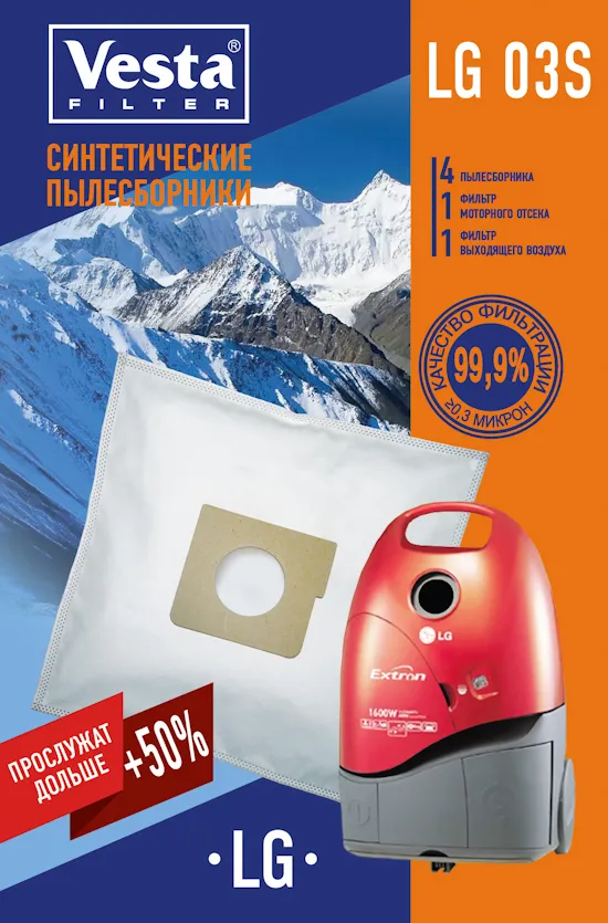 Vesta filter LG03S комплект мешков-пылесборников синтетических (4шт+ 2 фильтра) для пылесоса LG