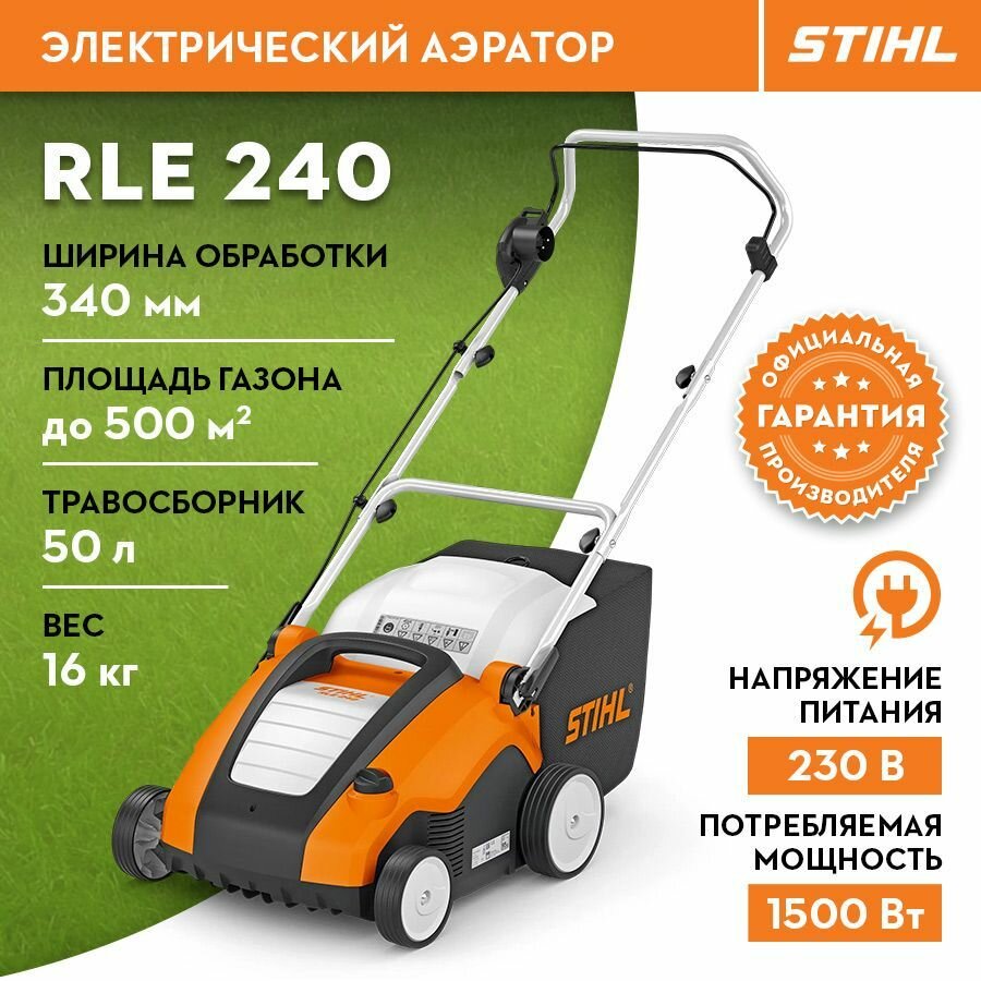 Аэратор-вертикуттер электрический STIHL RLE 240 (1.5 кВт, 34 см) + подарок