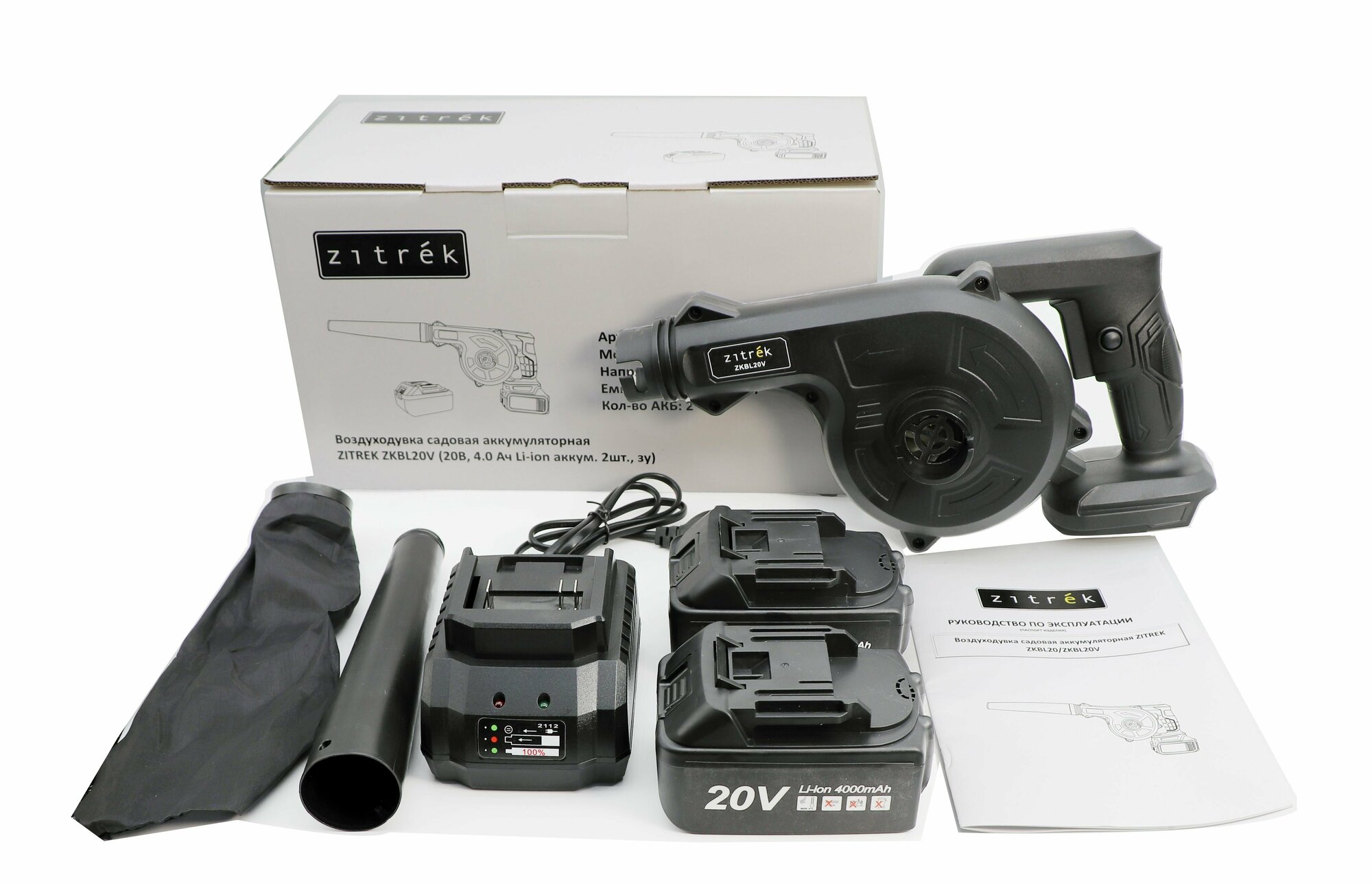 Воздуходувка садовая аккумуляторная ZITREK ZKBL20V (20В, 4.0 Ач Li-ion аккум. 2шт., зу)