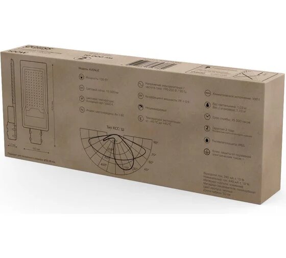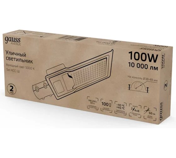 Уличный светильник GAUSS Avenue 100W 10000lm 5000K 190-250V IP65 420х160х57мм черный LED 1/10 629534300