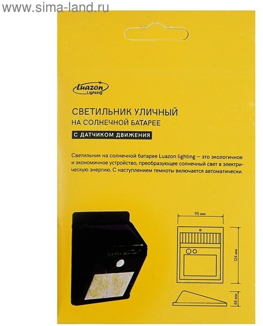 Luazon Lighting Садовый светильник на солнечной батарее с датчиком движения, накладной, 9.5 × 12.5 × 5 см, 40 LED, свечение белое