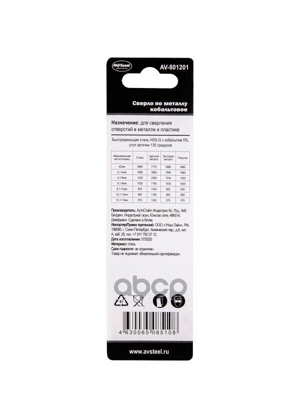 Сверло по металлу 1,0 мм "AV Steel" (уп-2шт) (Р6М5К5/М35, Cobalt HSS-Co 5%) интересное: