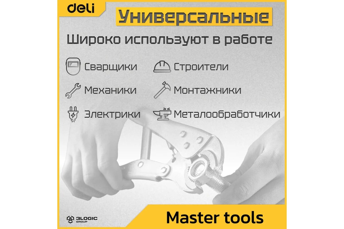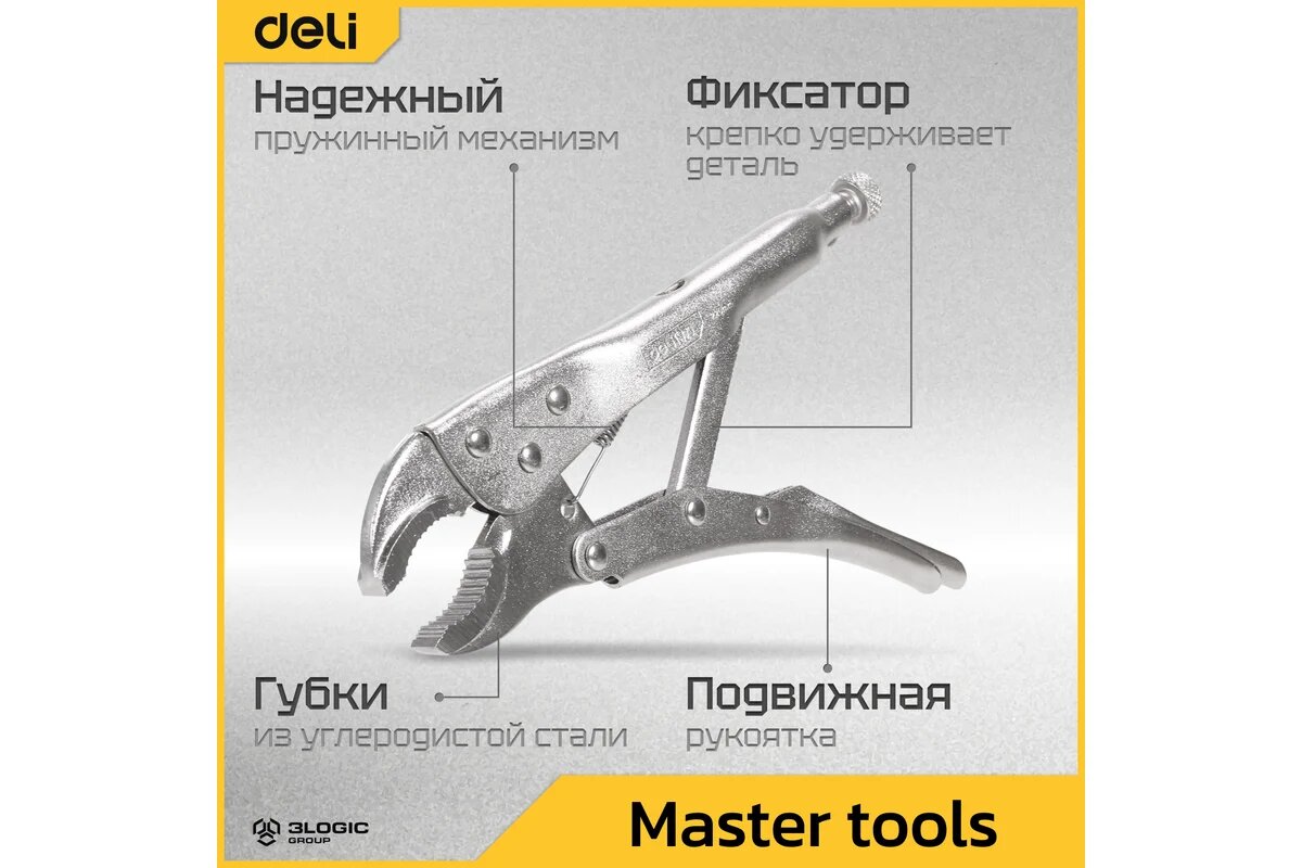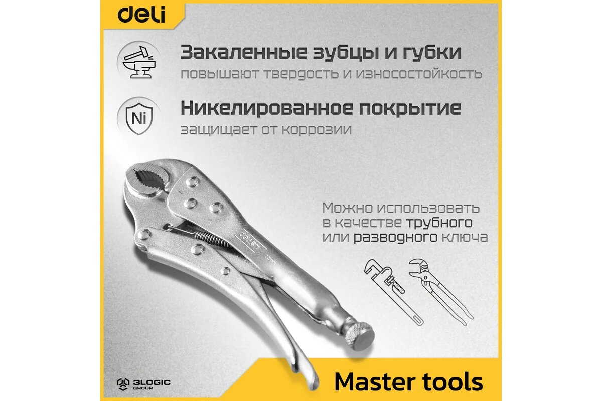 Купить DELI Зажимные клещи с круглыми губками DL2001 220мм (рабочий ход 45мм, углеродистая сталь, регулировочный винт) 98274