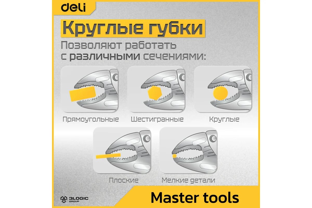 Зажимные клещи с круглыми губками Deli DL2001, регулировочный винт