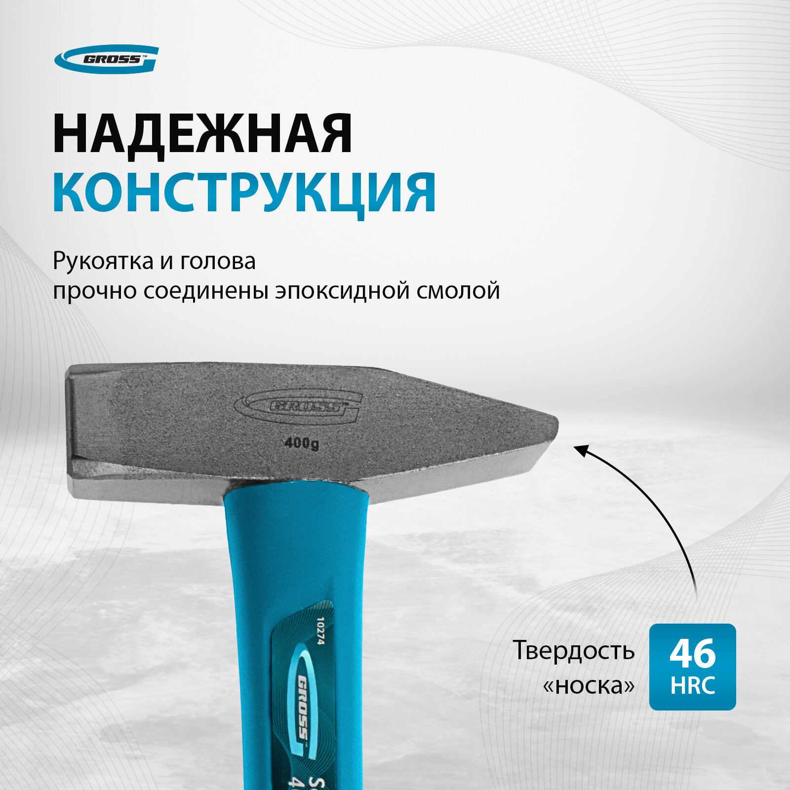 GROSS Молоток слесарный, 400 г, квадратный боек, фибергласовая обрезиненная рукоятка Gross, ( 10274 )
