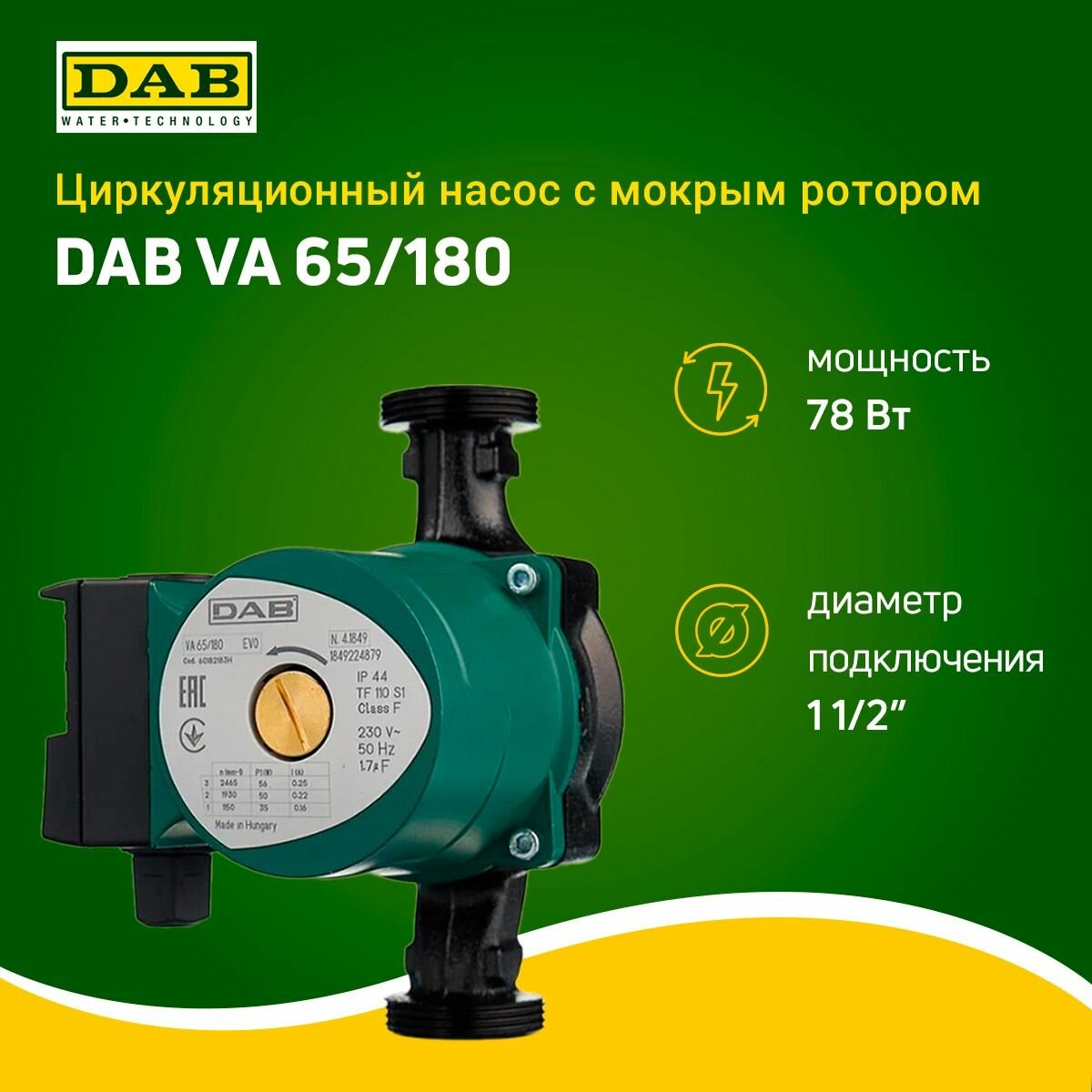 Купить Циркуляционный насос для отопления с мокрым ротором DAB VA 65/180 (220В, 78 Вт, 1 1/2") замена Grundfos UPS 25-60 60181676H
