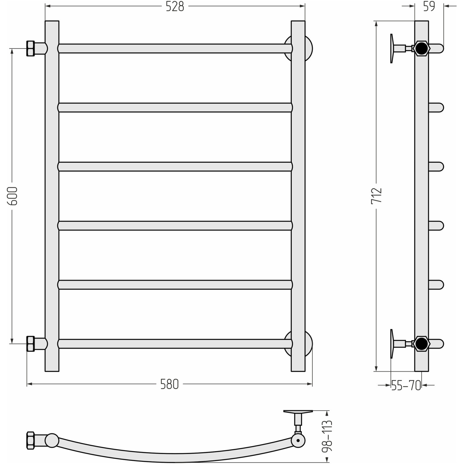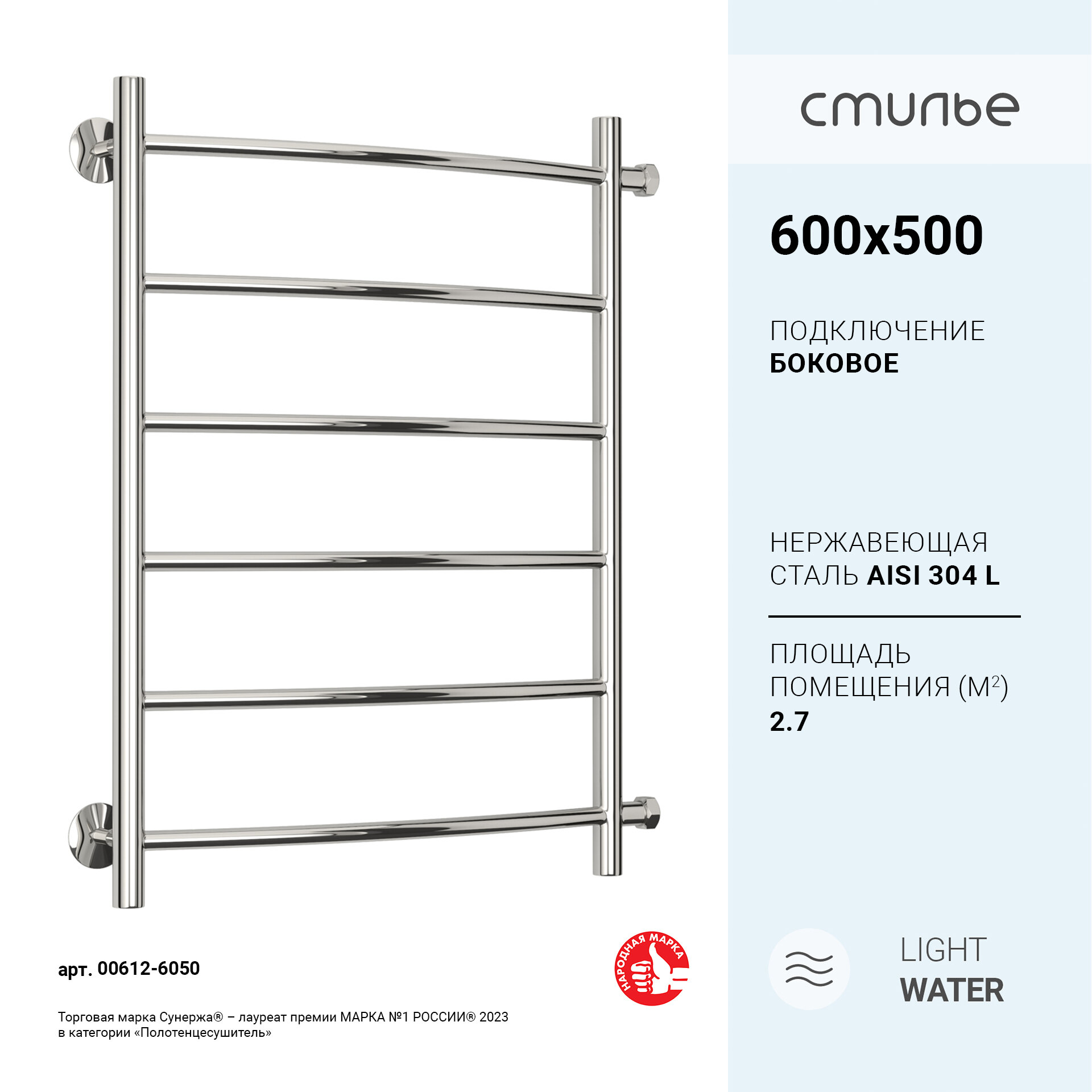 Водяной полотенцесушитель Сунержа 00612-6050 стилье "Версия-Б2" Полотенцесушитель водяной 600х500 мм (6) Г 18, без покрытия