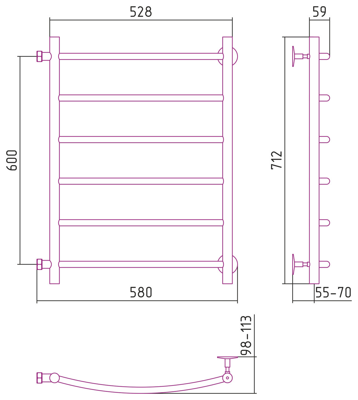 Купить Полотенцесушитель водяной Стилье Версия-Б2 60x50 00612-6050