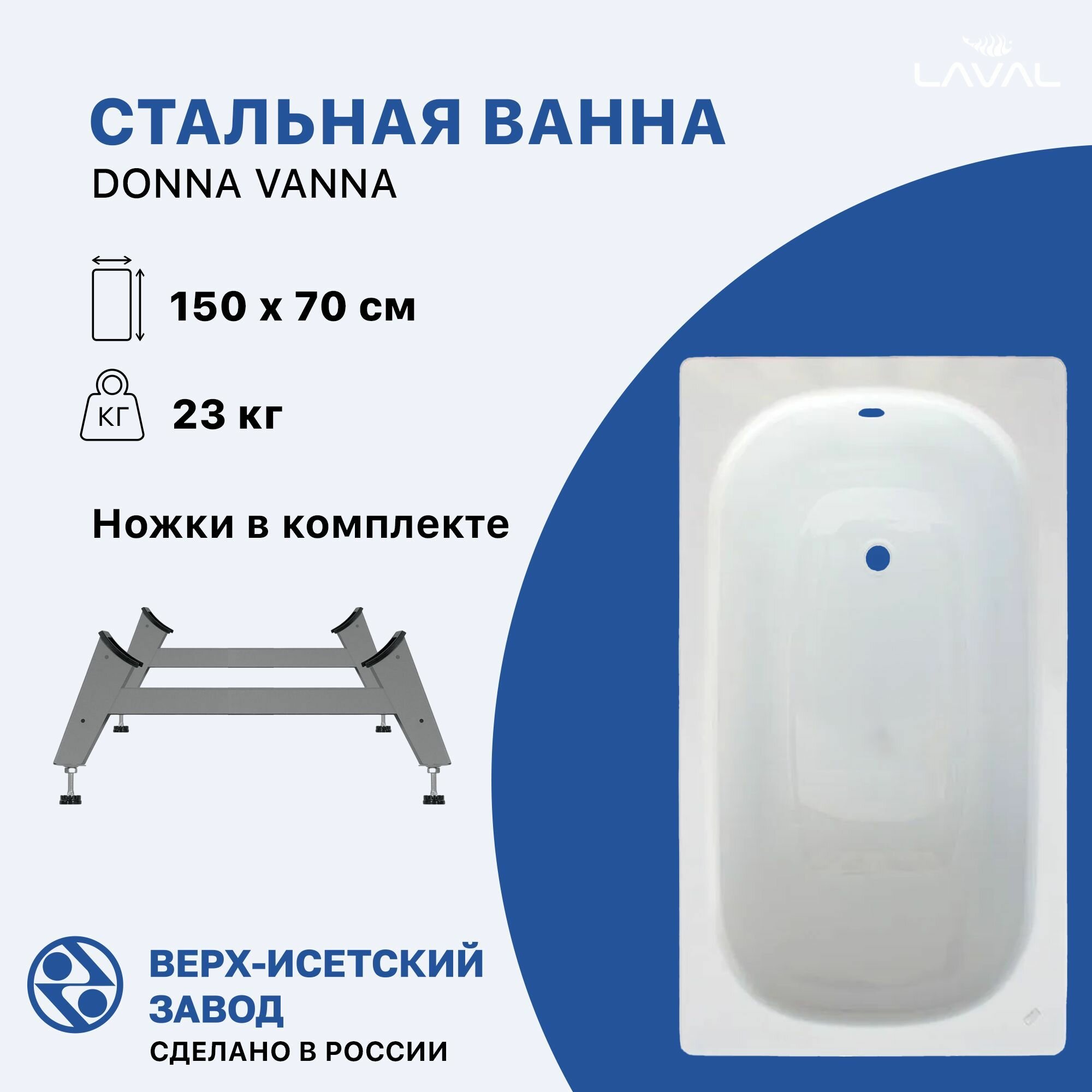 Стальная ванна 150х70 Donna Vanna, ножки в комплекте, толщина 1,8мм, ВИЗ интересное: