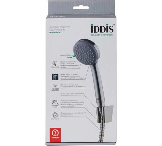 Душевой гарнитур IDDIS 001 лейка, шланг, 1 режим 0011F00i16 интересное:
