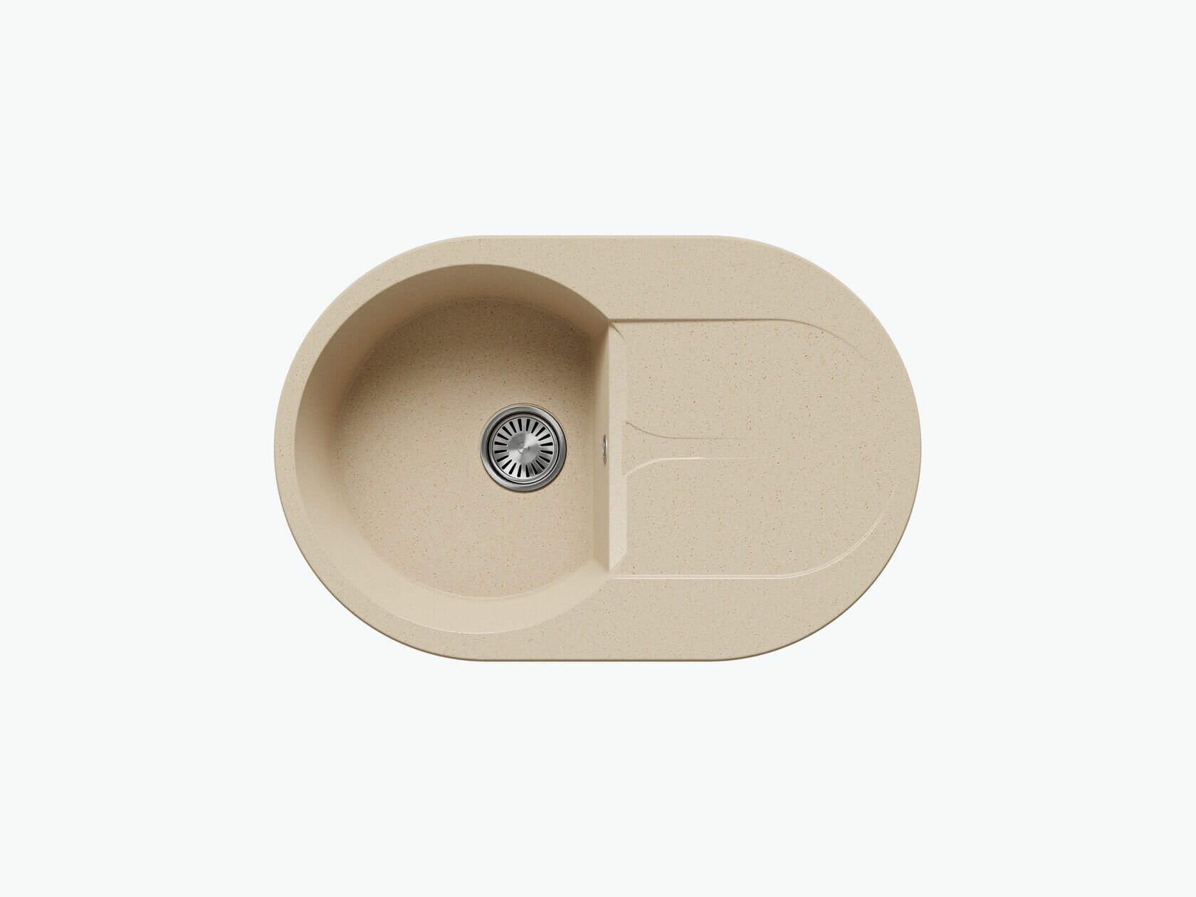 Мойка для кухни каменная POLYGRAN ATOL-760, бежевая, врезная, круглая, с крылом (№302 Песочный)