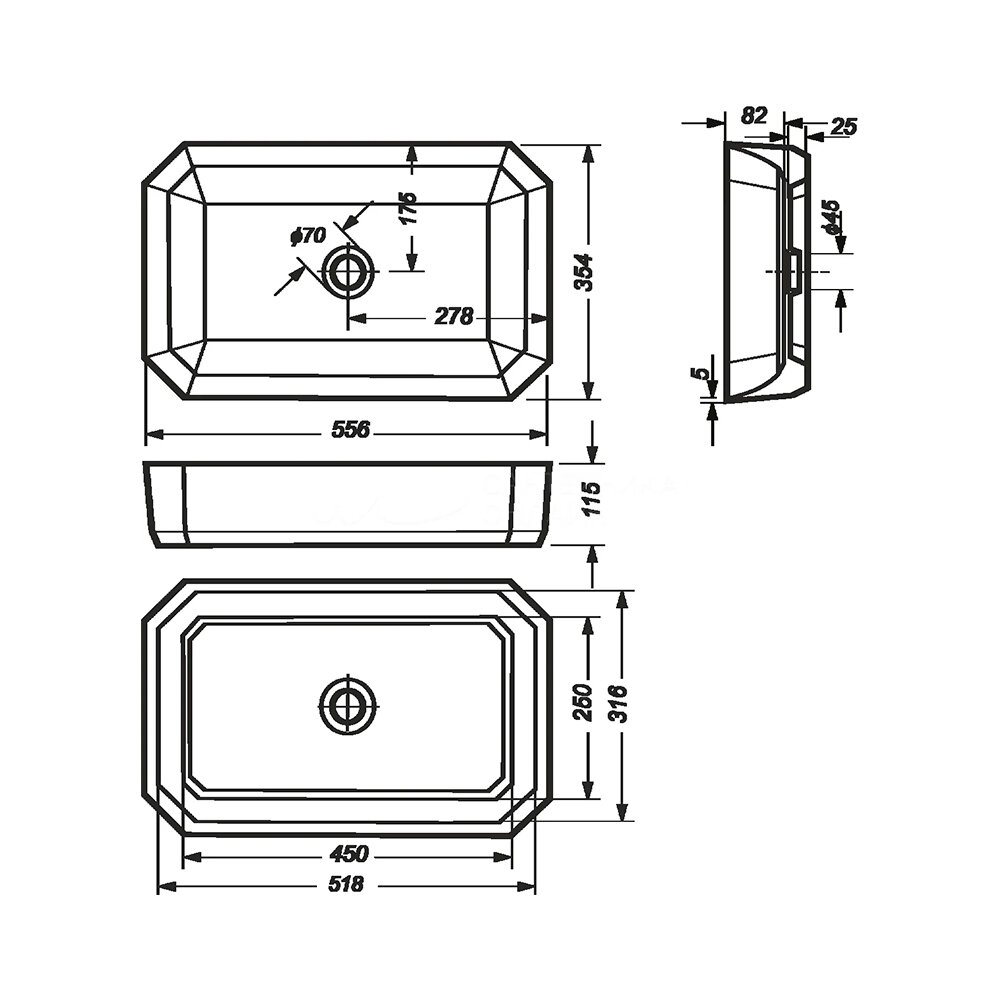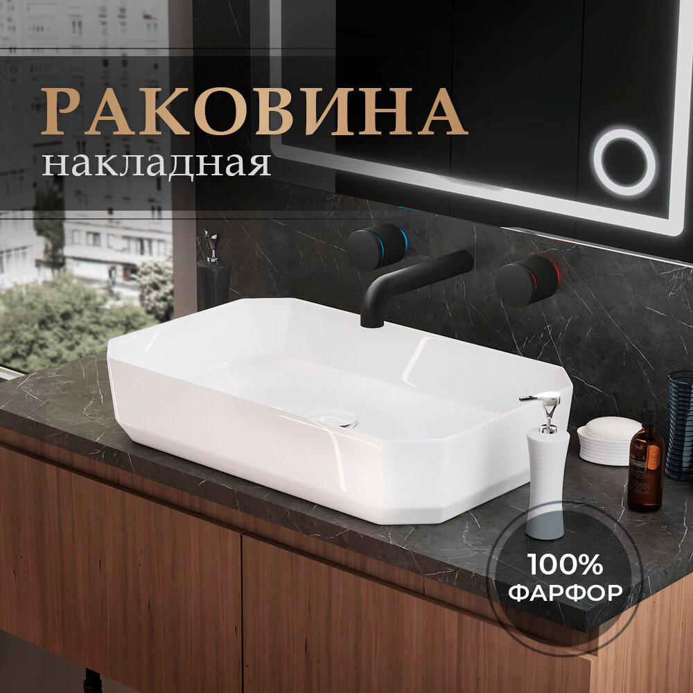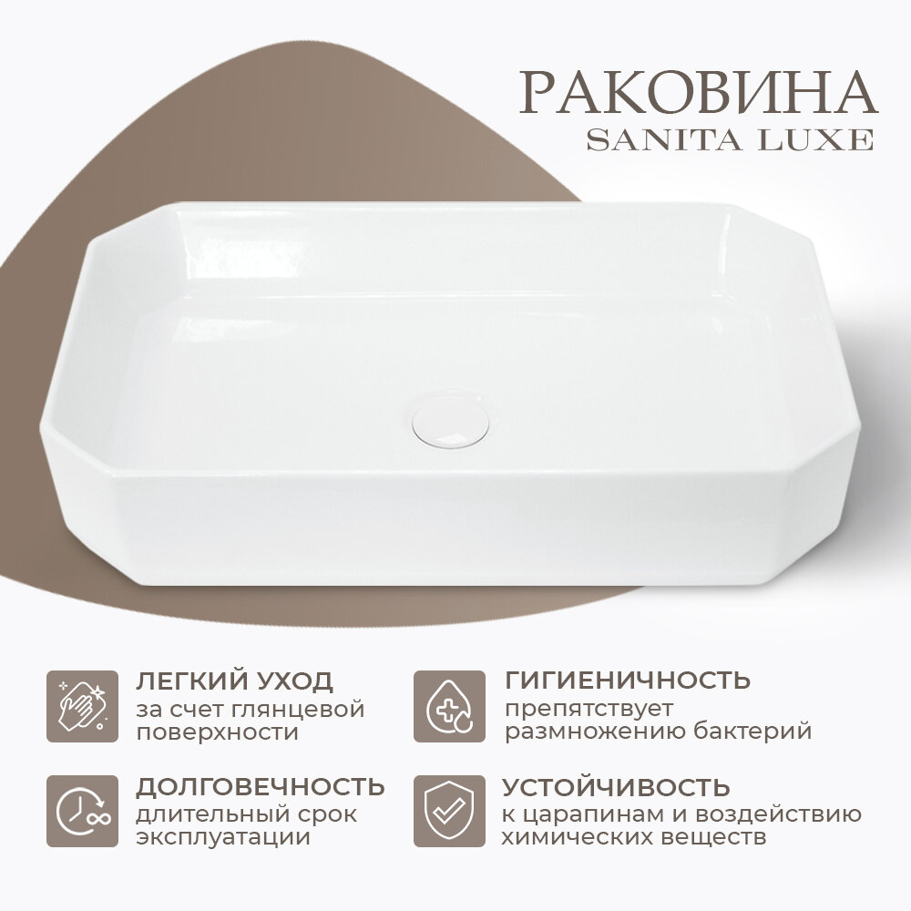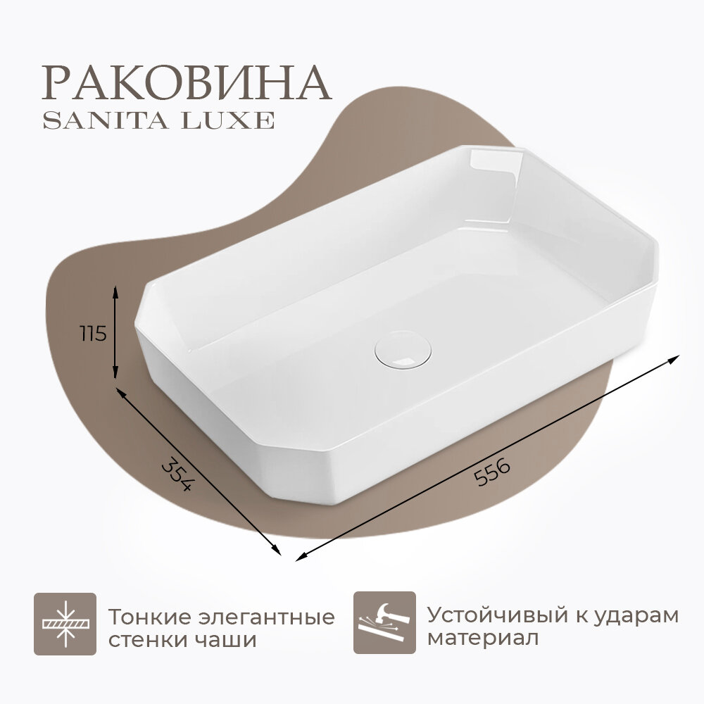 Раковина Sanita Luxe Line 55 55x25x11 см, фарфор, накладная установка, белая интересное: