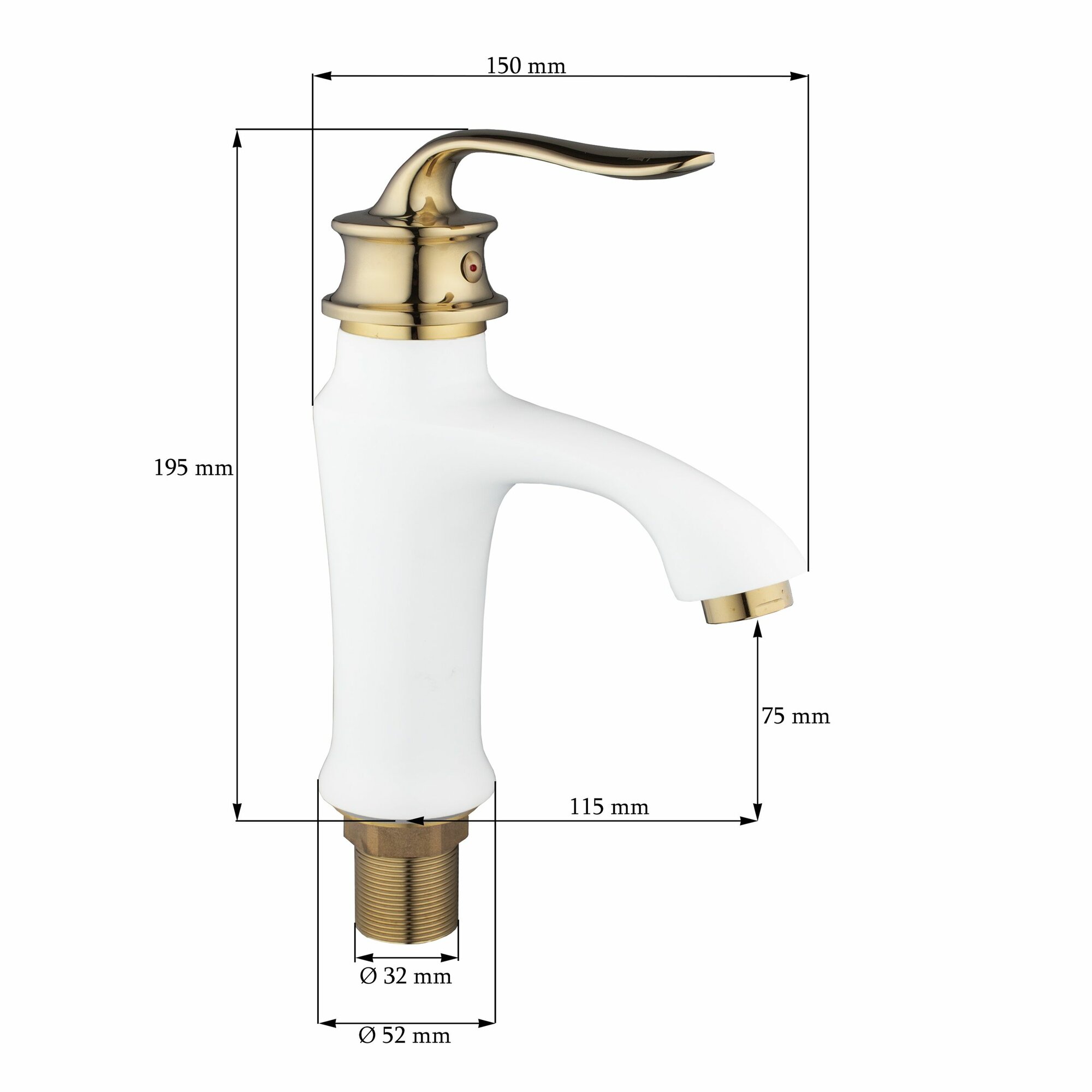 Смеситель на раковину Potato P10219-7 монолитный, картридж 35 мм, белый с золотом, крепление гайка