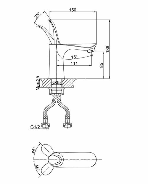 | Угол поворота рукоятки вертик. | 25 градусов |