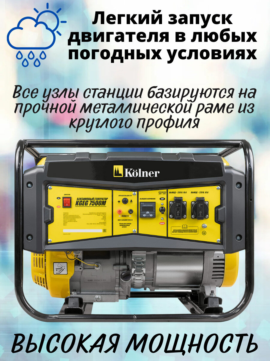 Бензиновый генератор Kolner 7500 Вт KGEG 7500М кн7500м