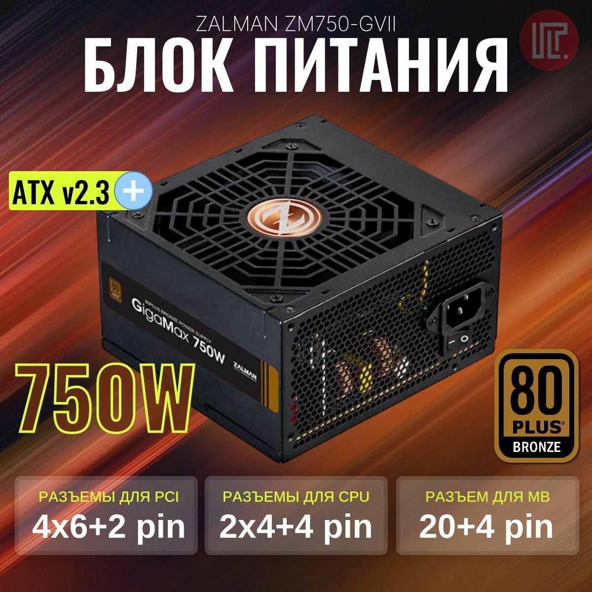 Блок питания Zalman ZM750-GVII, 750W, ATX12V v2.31, EPS, APFC, 12cm Fan, 80+ Bronze, Retail (ZM750-GVII)