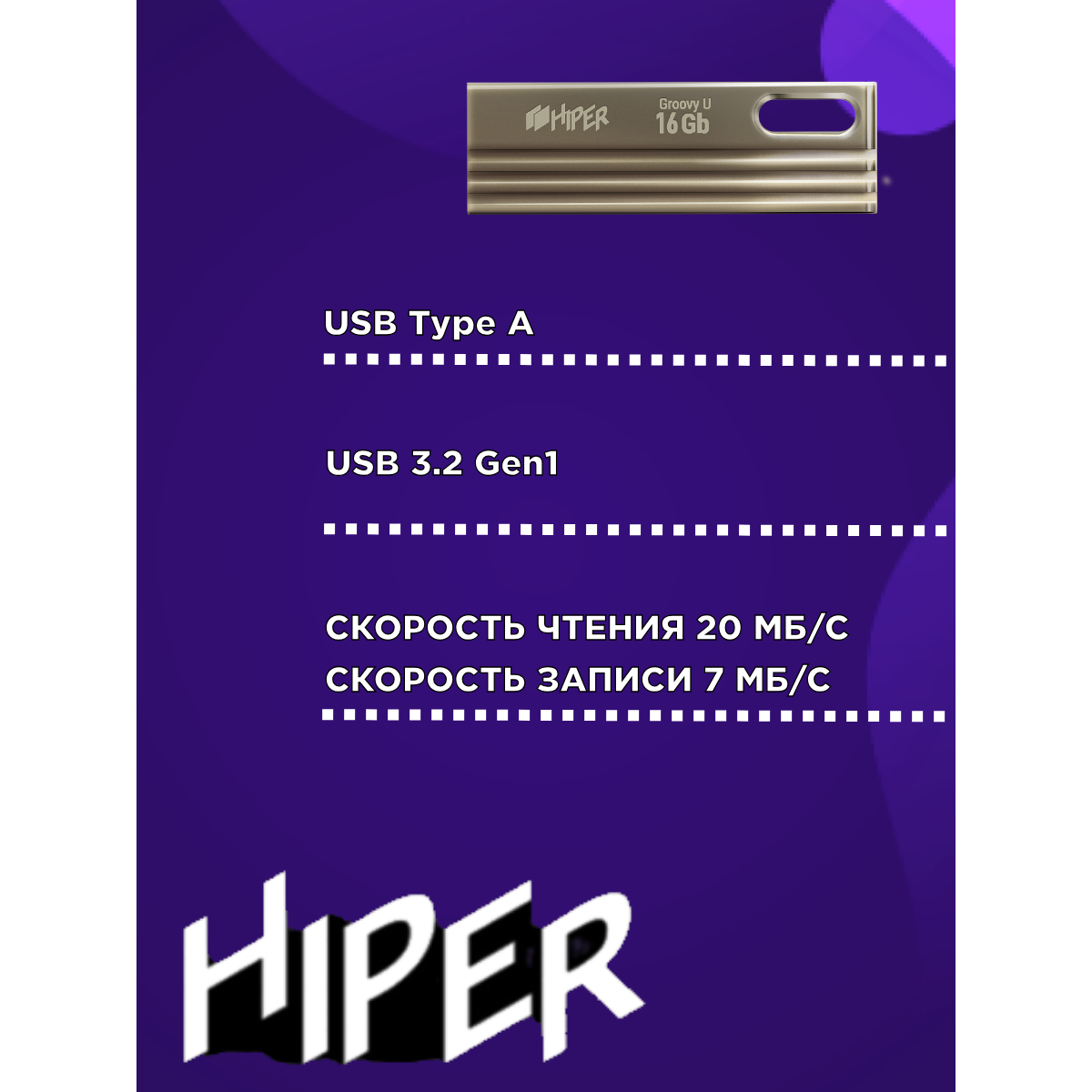 Накопитель HIPER USB2 Flash 16GB Hiper Groovy U, цинк, цвет титан