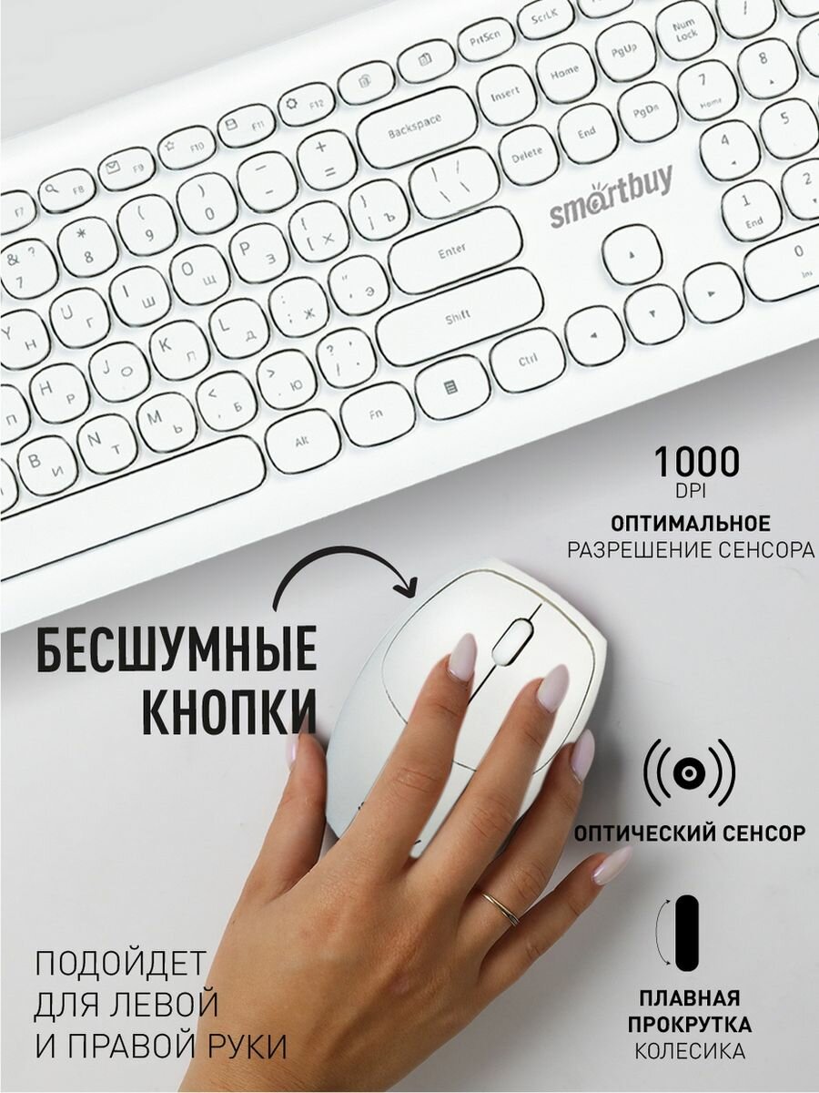 Комплект - клавиатура и мышь, беспроводные, Smart Buy SBC-666395AG-W, белые, 1 набор
