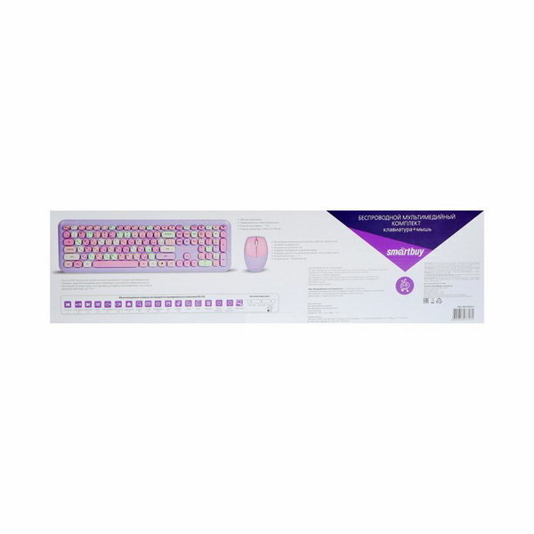 Комплект клавиатура и мышь Smartbuy SBC-666395AG-V,беспровод,мембран,1000 dpi,USB,фиолетовый
