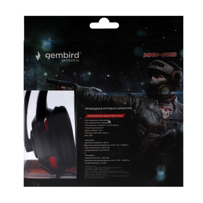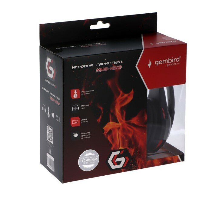 Купить Гарнитура игровая Gembird MHS-G210, черный/красный, регулировка громкости, кабель 1,8 м