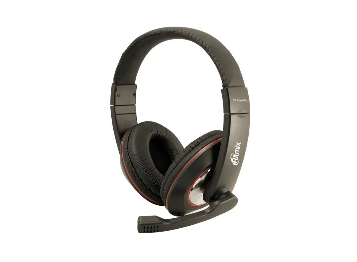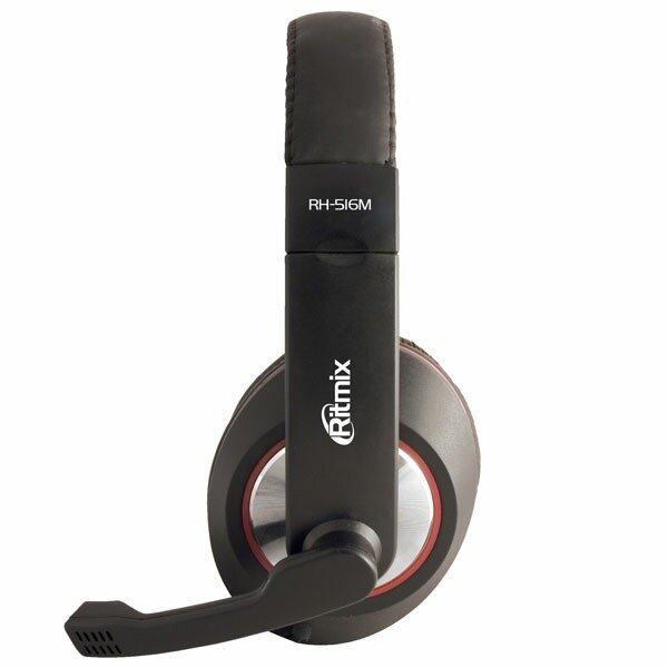 Наушники с микрофоном Ritmix RH-516M полноразмерная компьютерная гарнитура - 3м чёрно-красная