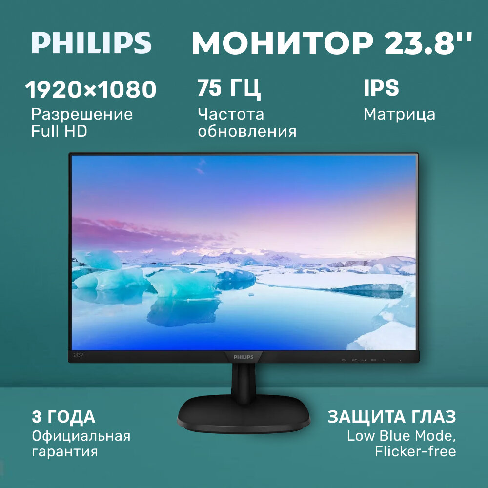 23.8" Монитор Philips 243V7QJABF, 1920x1080, 76 Гц, IPS, черный