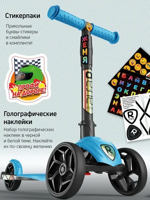 Самокат детский трехколесный с наклейками Alfa Mini R от Buggy Boom