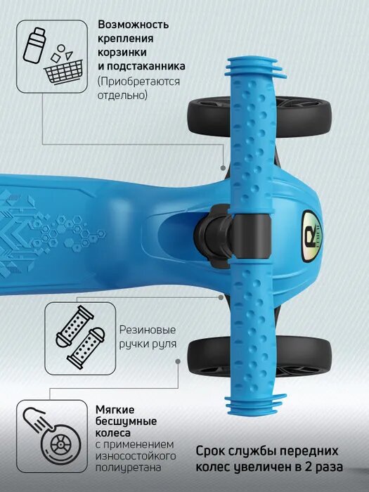 Самокат, самокат трехколесный детский, с цветными ручками Buggy Boom Alfa Mini, синий