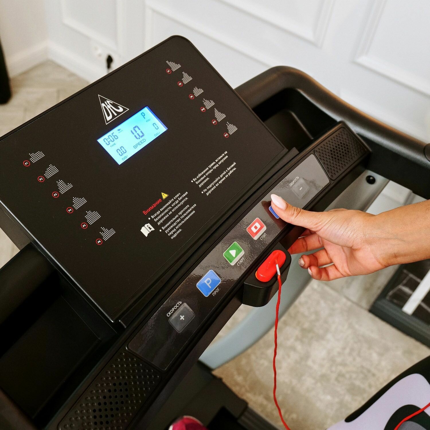 Беговая дорожка DFC Blues серая, для домашних тренировок, максимальный вес пользователя 100 кг.
