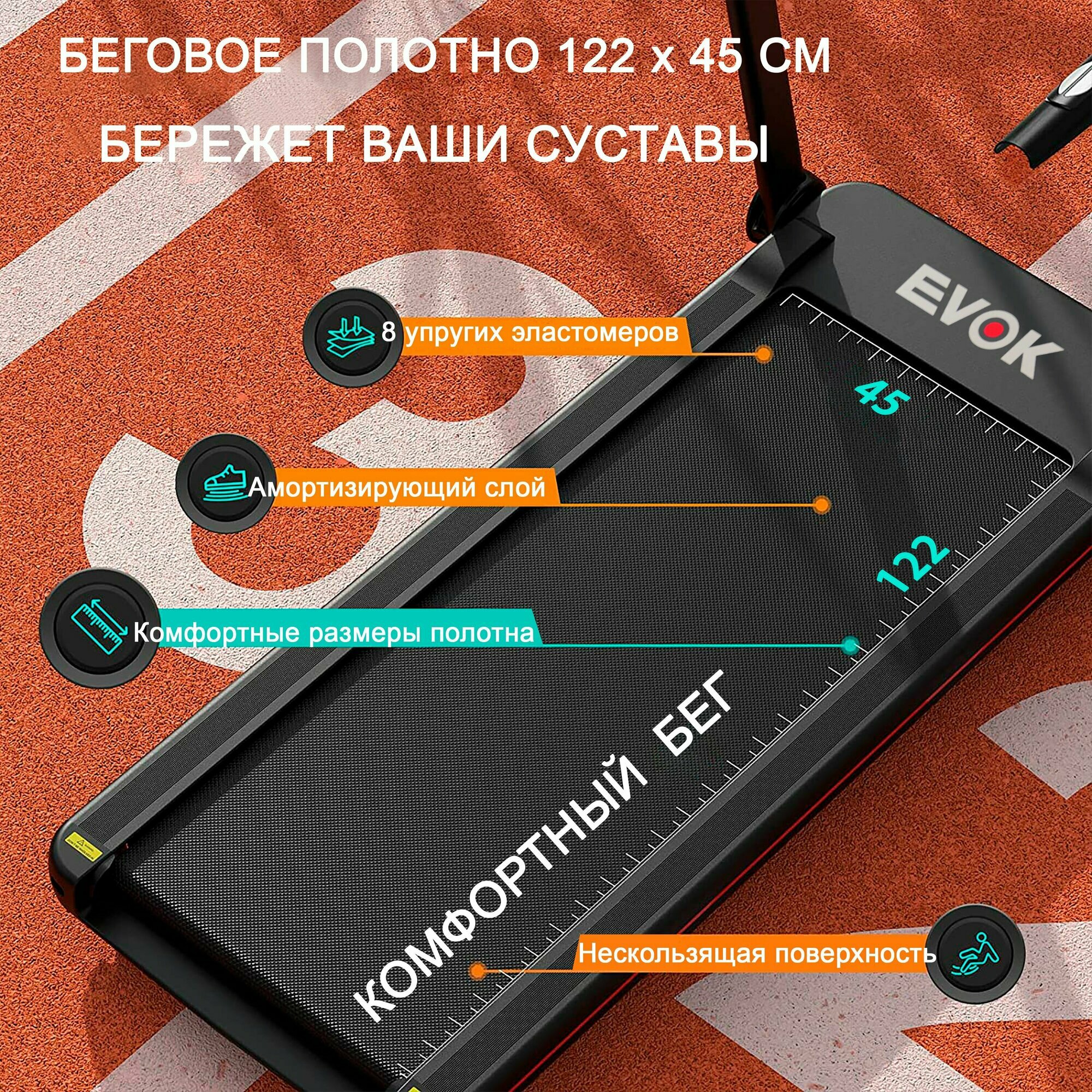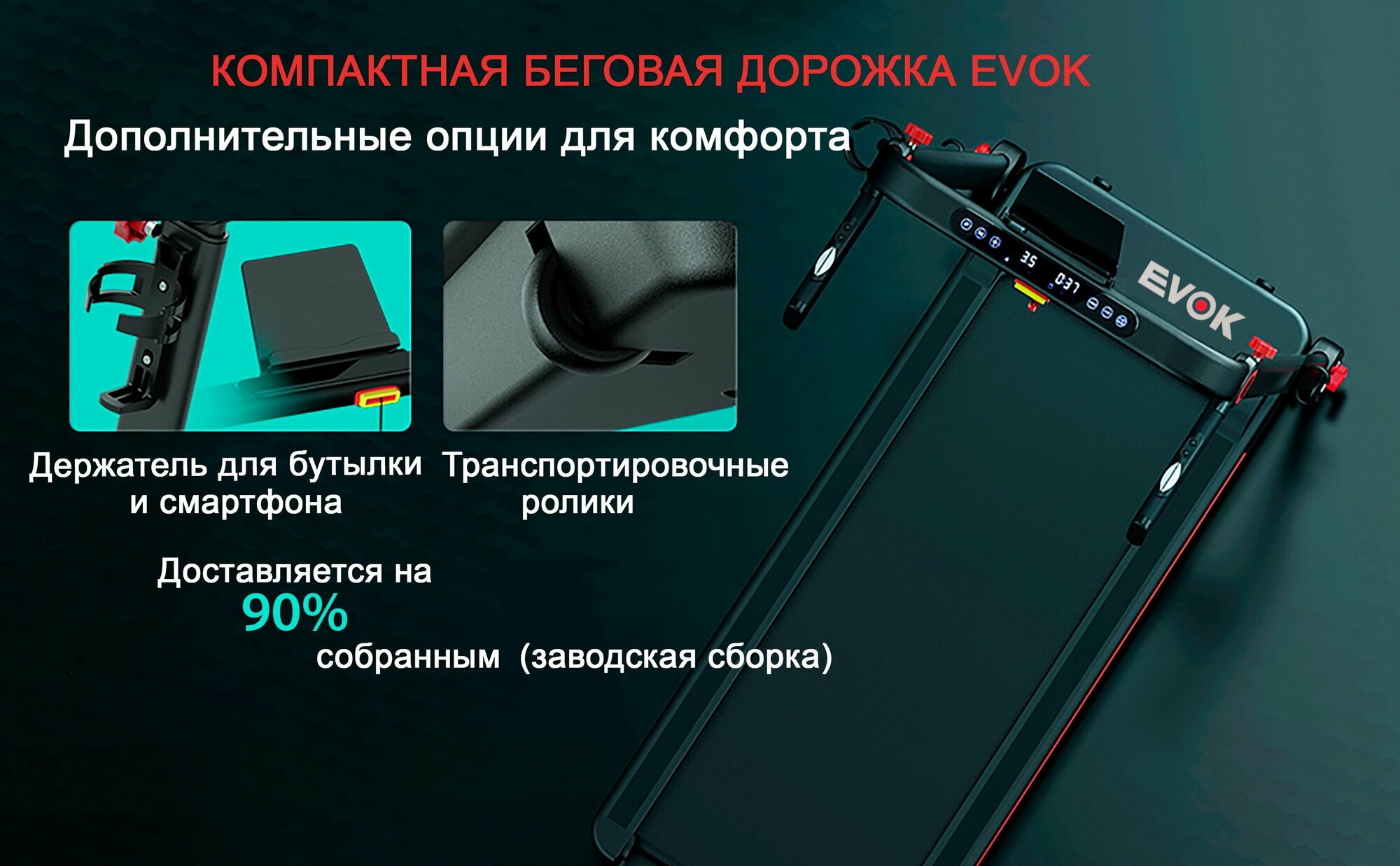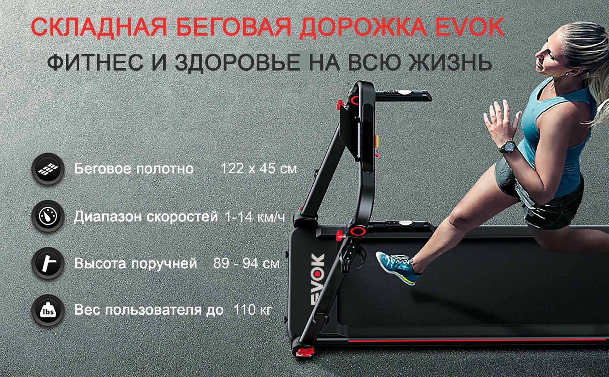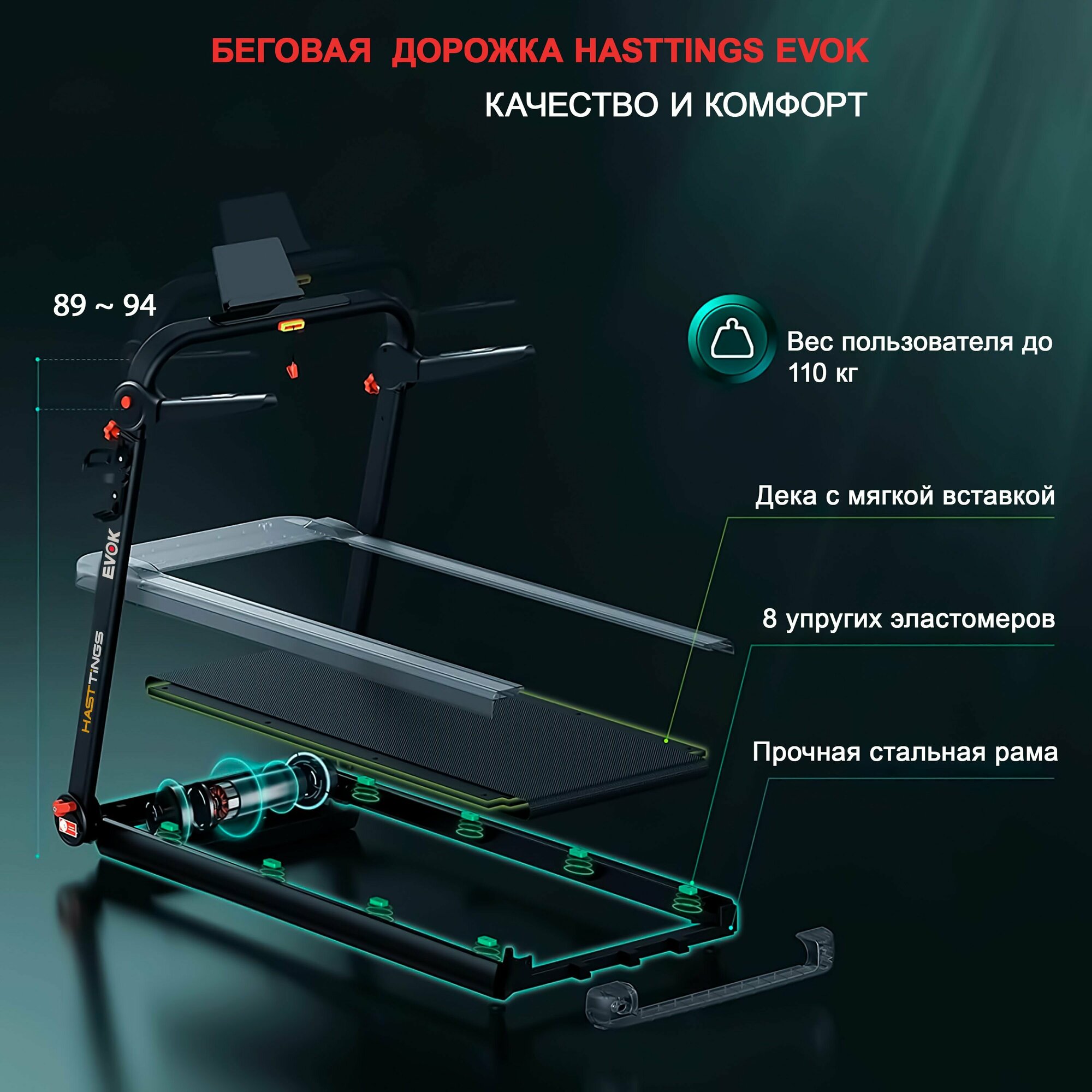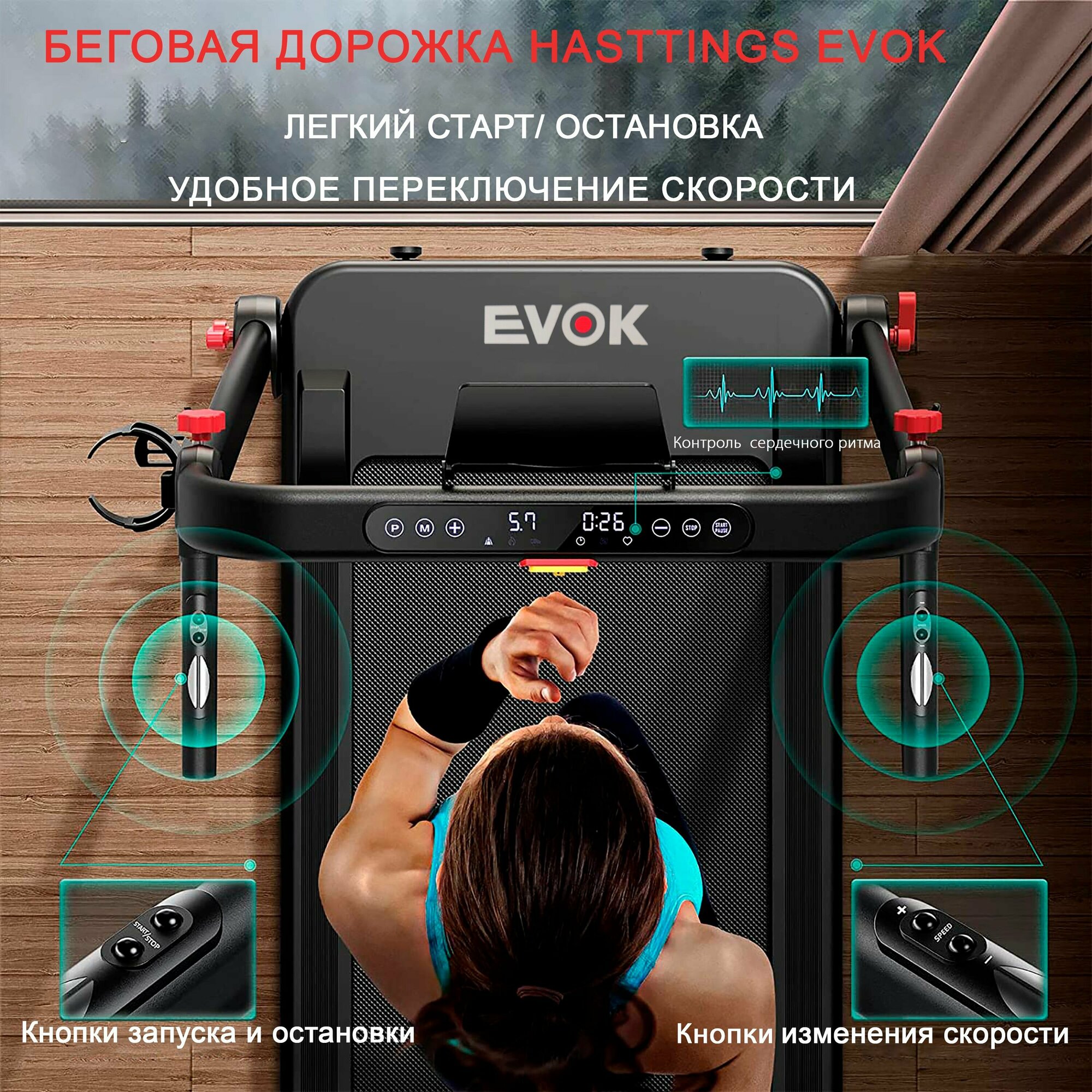Беговая дорожка Hasttings EVOK - складная/ до 110 кг/ до 300 ккал за 1 ч/компактная/ 1,5 л.с/ 36 программ/ модуль охлаждения двигателя