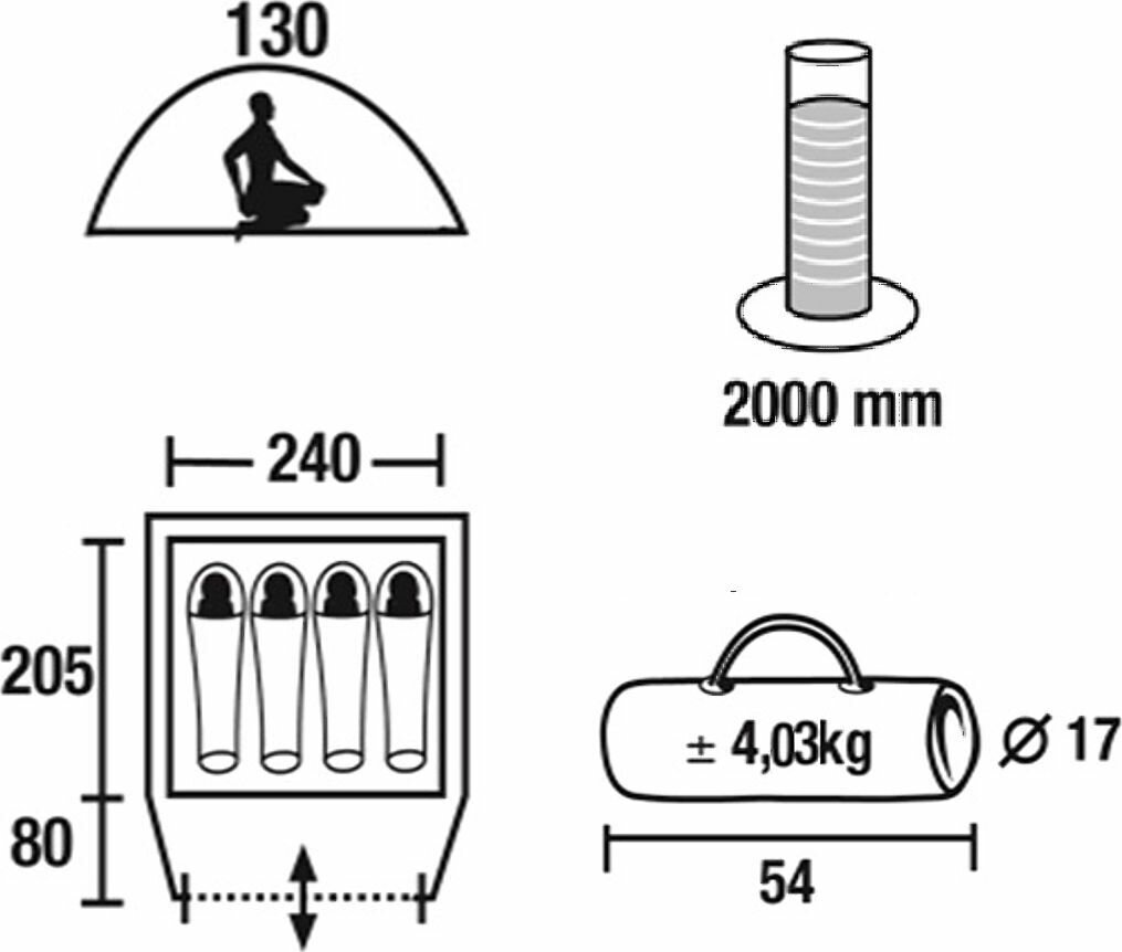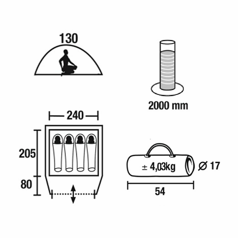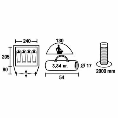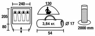 | Габариты внутренней палатки(ДxШxВ) | 240x205x120 cм |