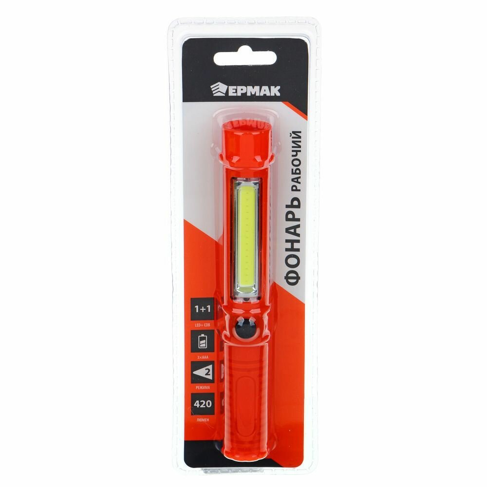 Фонарь ручной Ермак 1 COB + 1 LED, 3Вт + 1Вт, 3xAAA, 16см, резино-пластик, 2 режима интересное: