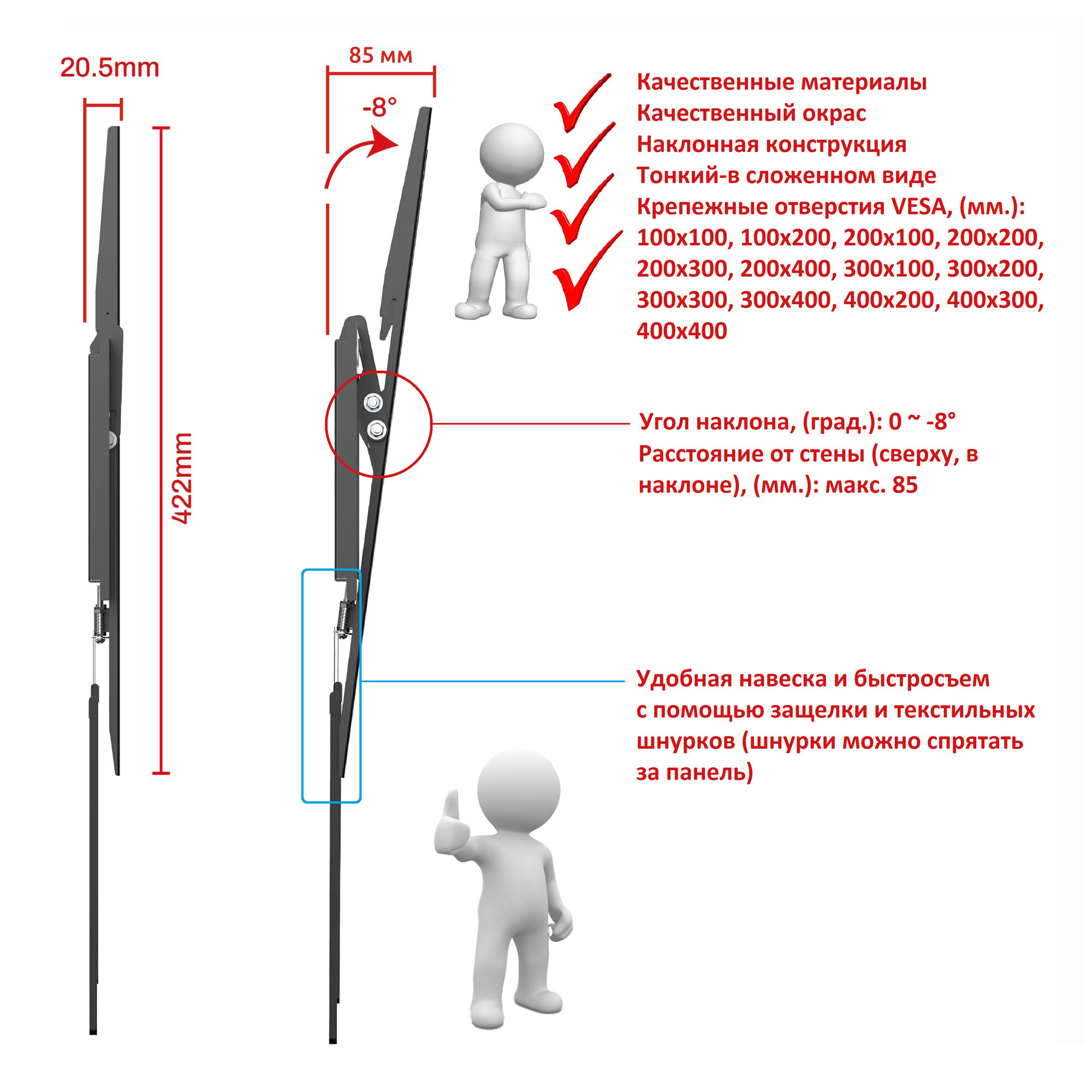 Кронштейн UniTeki TM1506 SLIM наклонный, быстросъемный для телевизоров и мониторов от 32 до 55 дюймов