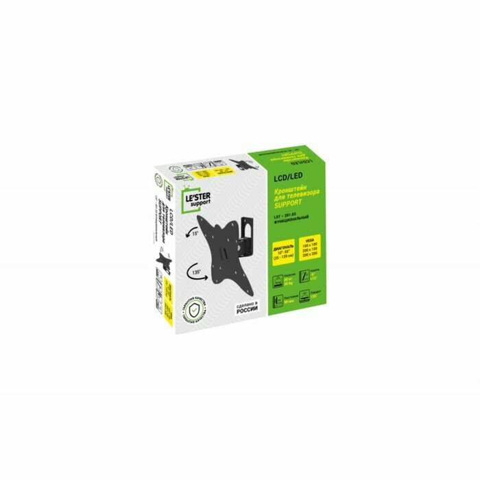 Кронштейн LE'STER LST-201.03 для ТВ от 10" до 55"(25см-139см), наклонно-поворотный, Угол наклона -6/+18 гр, поворота 135 гр, VESA:100x100, 200x100, 200x200, 100х200