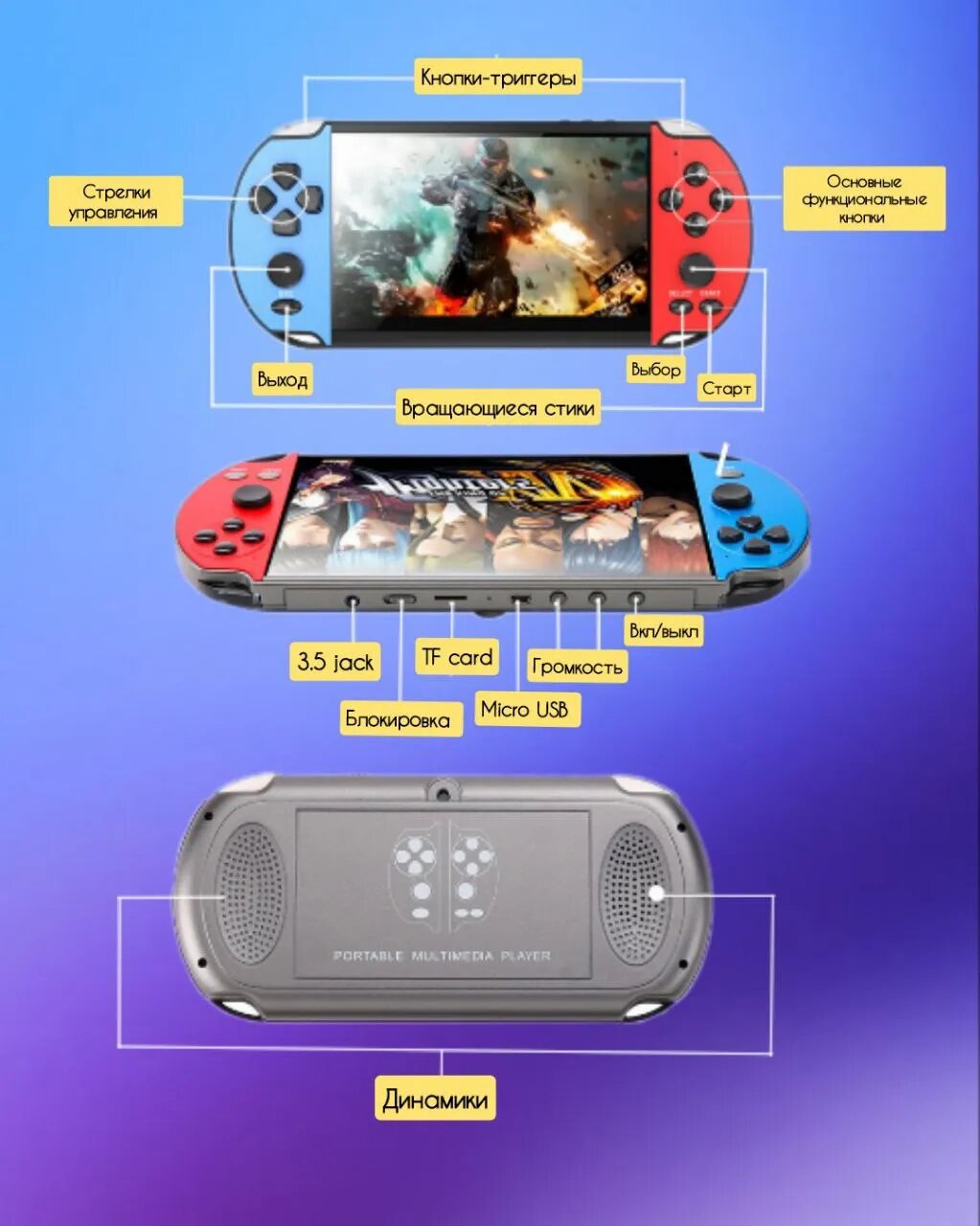 Ниже Вы можете прочитать отзывы на Портативная игровая приставка x7 Plus с поддержкой фото, видео и музыки, ознакомится с подробными характеристиками, посмотреть интересные обзоры и фотографии на Портативная игровая приставка x7 Plus с поддержкой фото, видео и музыки.