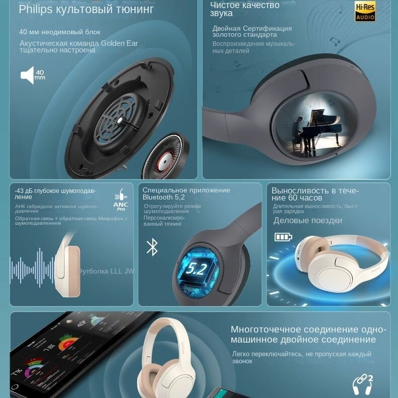 СохранитьBluetooth-гарнитура Philips TAH7508 с шумоподавлением ANC, устанавливаемая на голову интересное: