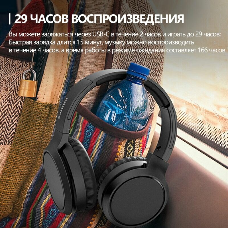 Накладные беспроводные наушники Philips TAH4205BK/00 BLACK