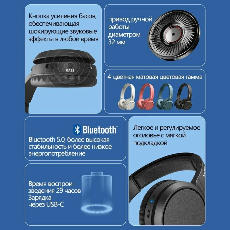 СохранитьBluetooth-гарнитура Philips TAH4205 с оголовьем, высокое качество передачи Bluetooth 5.0. интересное: