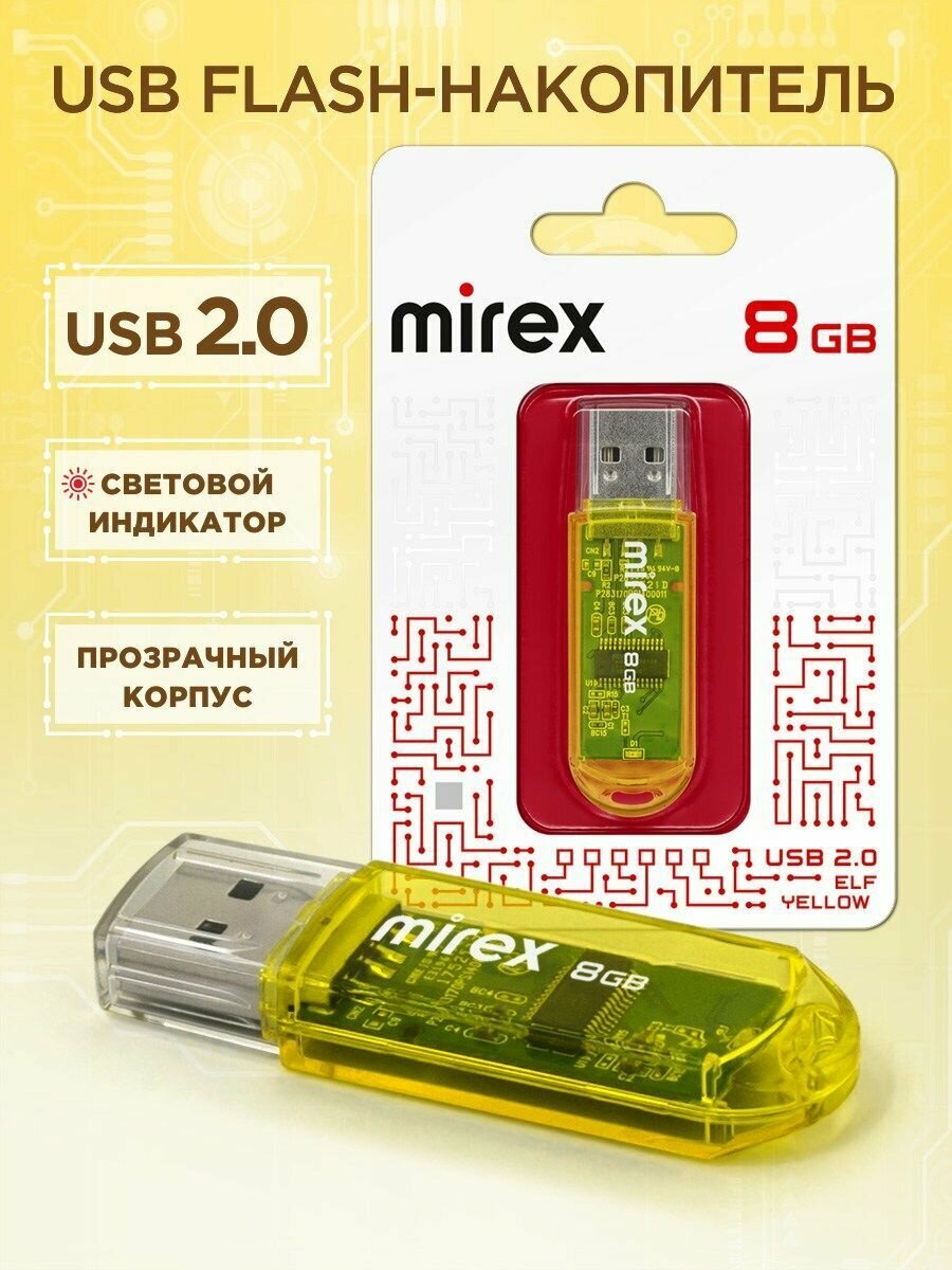 Купить Флеш накопитель 8GB Mirex Elf, USB 2.0, Желтый