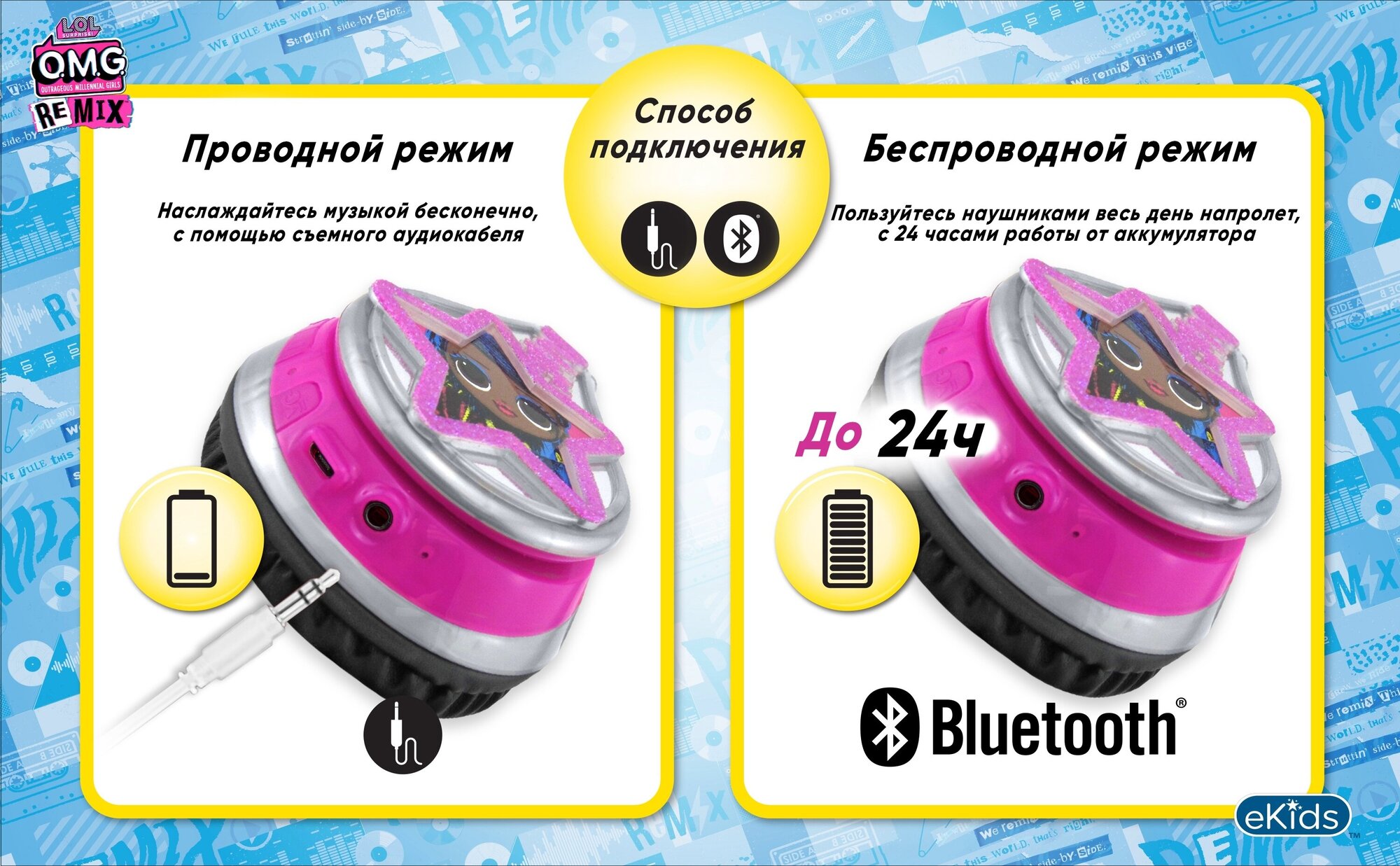 Детские Bluetooth наушники L.O.L. OMG Remix eKids LL-B52.UFXV23 интересное: